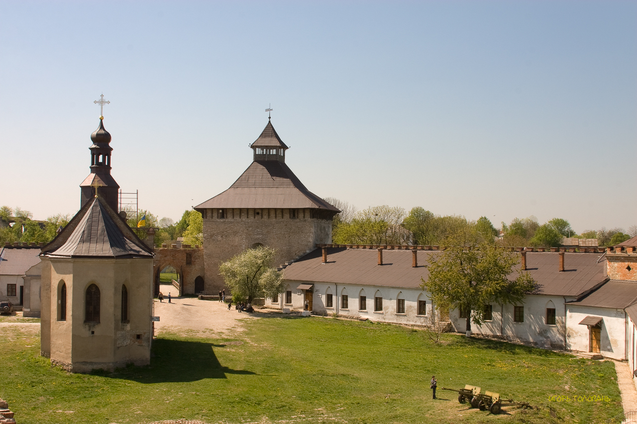 Здесь, в бывшем культурном центре Волыни, рано утром нашли и первые достопримечательности – замок Константина Острожского (1571 г.) на реке Случ и костел Иоанна Крестителя (1754 г.), а также сторожевую башню, являющуюся визитной карточкой города. Замок сейчас полуразрушен и закрыт для посещения, реставрацией тогда и не пахло, на территории только вяло копались археологи, но попасть туда можно, если очень хочется. А в самой исторической части теперь расположена спасательная станция.