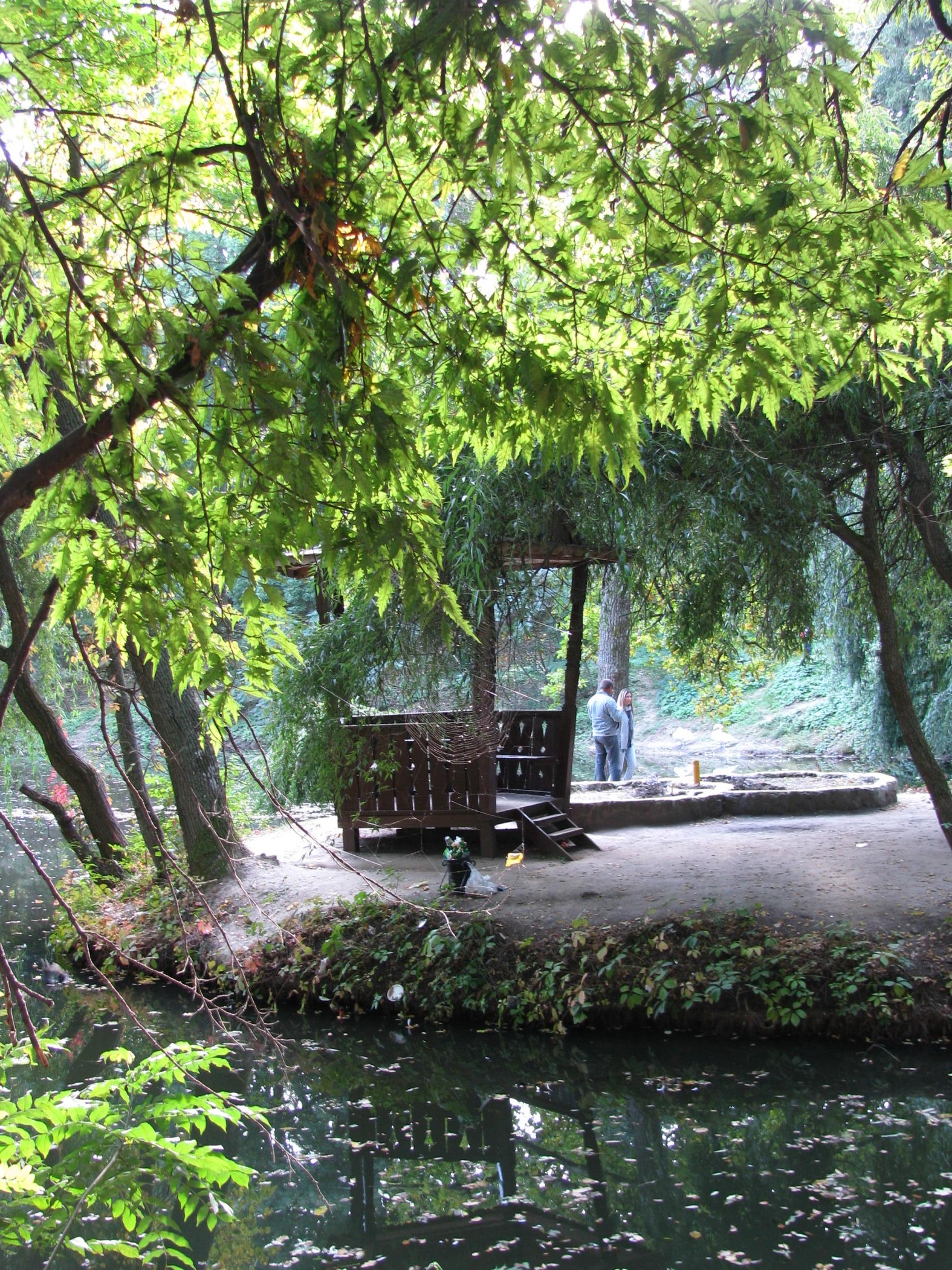 А ещё на озерах находится остров Влюблённых. Попасть на него можно только по узким мосткам, а когда пара занимает скамеечку, специальный механизм поднимает мост, и влюбленные остаются вдвоем.