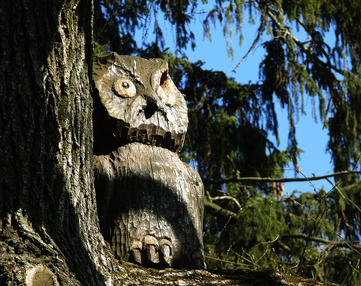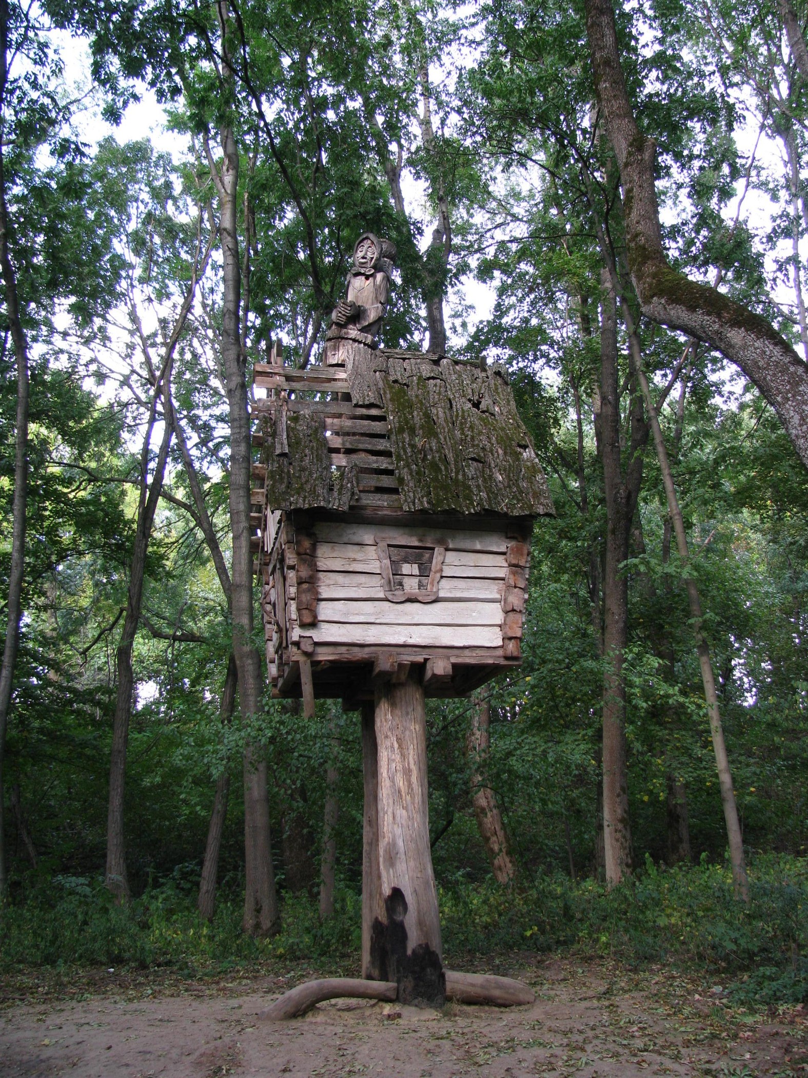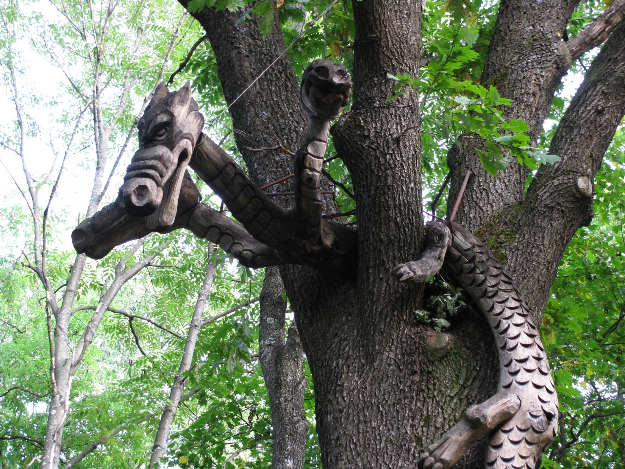 Прямо у входа в парк растет софора японская, а рядом с ней – могучий пробковый дуб и рябина ликерная. Именно Каразины первыми на Украине стали прививать деревья, и это позволило редким видам прижиться в парке. Буквально разбегаются глаза от обилия и сочетания растений: рядом с американской рябиной пристроилась лиана, раскинулись кусты барбарисов, виргинский можжевельник, стройные канадские ели, китайский ясень, карандашное дерево… Тянется к свету пихта лула, посаженная ещё Каразиными. И здесь же — громадные сибирские пихты. Вместе с другими высокими деревьями они создают в дендропарке особый микроклимат, помогая выживать иноземным растениям. Кстати, в дендропарке комфортно чувствует себя гинкго двухлопастное. Его второе имя – дерево счастья. Если вы верите в легенду, прислонитесь к стволу и загадайте желание. Говорят, оно непременно сбудется! Удивительно, но исследования ученых показали, что гинкго способно жить две тысячи лет.В парковый комплекс гармонично вписалось множество деревянных скульптур. С любовью изготовленные мастерами, они не просто украшают парк, но и творят свой, неповторимый сказочный мир. Стоит избушка на курьих ножках, косит хитрым взглядом Баба-Яга с неизменным котом, скалится с дерева трехголовый Змей Горыныч. Скульптурные ансамбли постоянно пополняются, и вполне возможно, что в следующем сезоне здесь появятся какие-то новые сказочные герои.