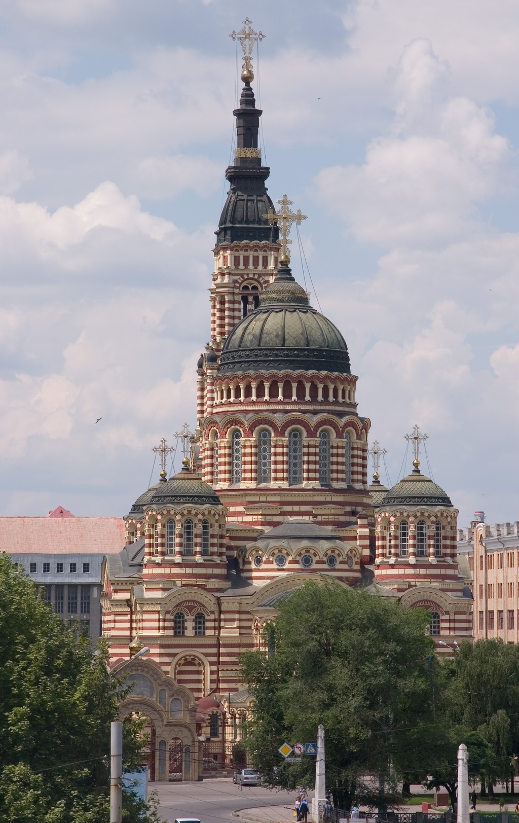 Здание Собора Успения Пресвятой Богородицы – древнейший православный храм Харькова, переживший с семнадцатого века несколько перестроек. В 1700 году, после пожара, храм разобрали и построили из камня. В 1818 году на собраниях граждан и прихожан Харькова, обсудили предложение выстроить высокую колокольню в честь победы над Наполеоном Бонапартом в Отечественной войне 1812 года. Архитектором поручено было стать Евгению Васильеву, являющимся профессором архитектуры Императорского университета. Но, согласно легенде, городской голова возмутился, что колокольня окажется выше колокольни храма Ивана Великого в городе Москве, высота которой 81 метр. Тогда архитектор пошёл на хитрость и пообещал переделать проект. Во время последующих рассмотрений Васильев демонстрировал чертежи, на которых не была указана общая высота колокольни. Таким образом, проект получил утверждение в Санкт-Петербурге, где не знали о запрете городского головы.