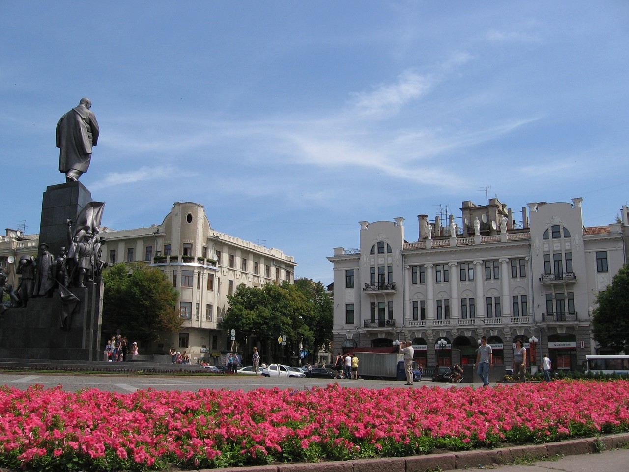 … Здесь, на площади Свободы, кажется, что начинаешь ощущать то, что делает Харьков Харьковом – магию, которую не передать словами. Может быть, дело в сочетании противоположных сил? С одной стороны – Харьков поражает своим пространством улиц и проспектов; поражает огромного размера площадь Свободы, памятник Ленину на высоком постаменте, рядом — величественное здание Госпрома, построенное в стиле «конструктивизм»... В то же время, кругом – приятные, улыбчивые лица прохожих, среди которых много студентов, какие-то особенные, «харьковские» аллеи, непередаваемое ощущение столичности и интеллигентности…