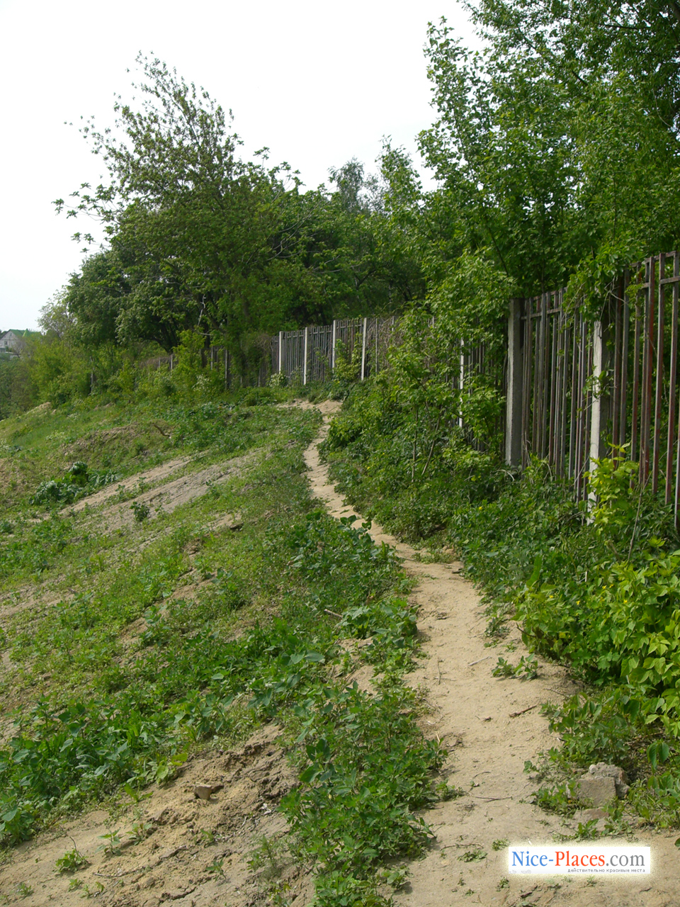 В общем — мы ее нашли, но, как оказалось, территория, по которой мы в прошлый паз взбирались на горку к забору с вожделенным проходом была уже кем то выкуплена и массово застроена. мы прошли дальше, поднялись вверх и двигаясь вдоль забора пошли искать дырку. Судя по свежей тропе мы были не первыми... Надо заметить что данный путь совсем уж для энтузиастов — экономия 5 грн того не стоит (более того, как по мне отдать столь символическую сумму на развитие парка как раз и следует), но нам важен был результат. Подъем оказался совсем не таким прикольным. Но да ладно — мы то уже наверху!!! И тут выясняется, что дырка, которую мы помним по прошлому году заварена металлической арматурой уже в этом году... Причем забор вокруг как-то подозрительно блестит, а сверху так и вовсе переливается... Еще бы ему не блестеть — намазанный какой-то гадостью типа солидола... Но дырку мы таки нашли — дальше. Не такую большую, но вполне удобную. Это как раз оконечность парка — людей почти нет — везде зелено — ляпота...