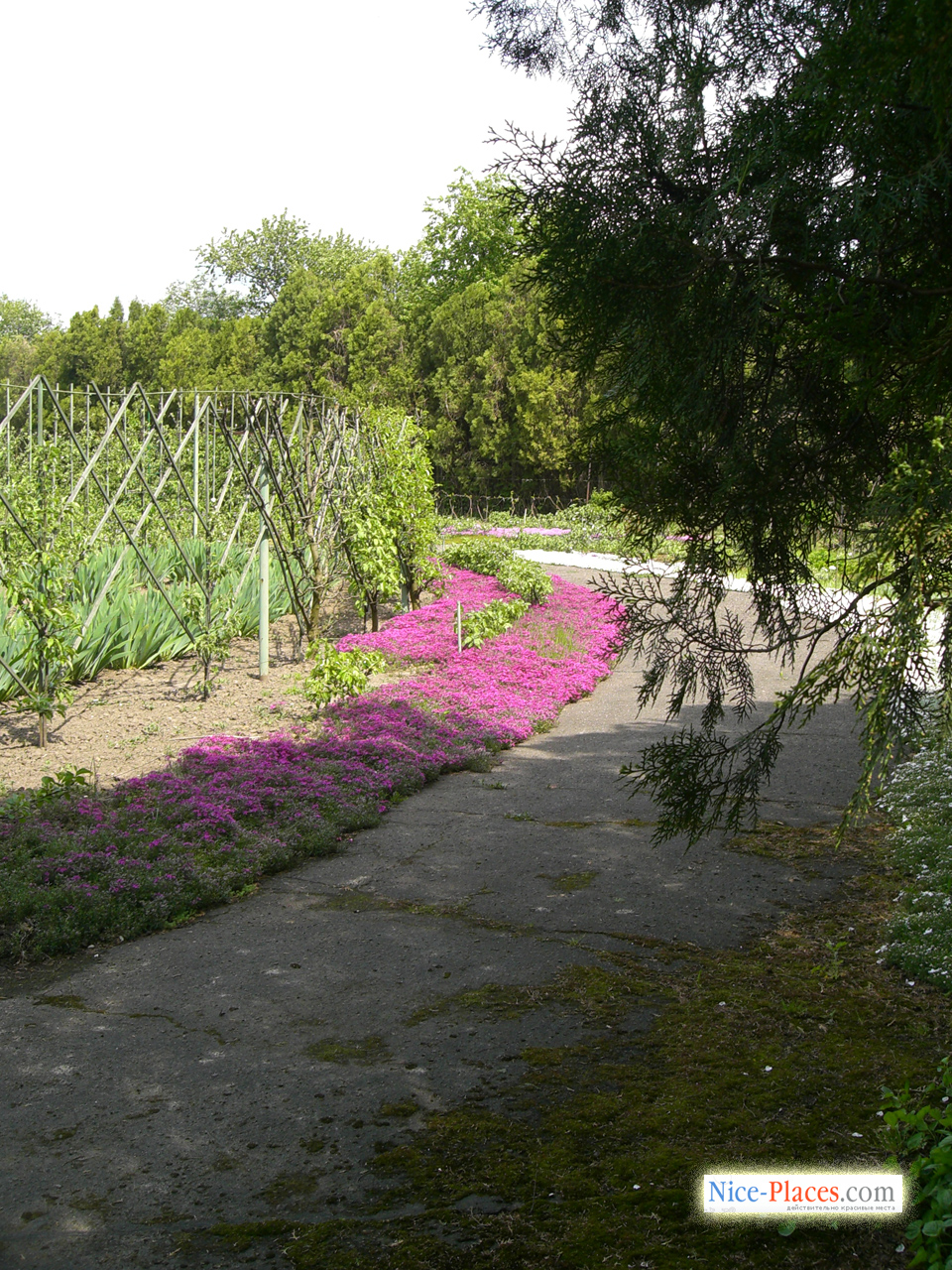 Ну а теперь собственно повествование о цели путешествия. Я не особый ценитель — поэтому сильно поражен не был и уж точно не стремился найти все 100 различных сортов... Остальным же очень понравилось. В саду есть 2 сегмента, в котрых растет сирень — один как раз в правом углу относительно центрального входа, а второй недалеко от входа в выдубычцкий монастырь. Сиреневые аллеи красивы, а уж пахнет от них — закачаешься... Дошли до центральной аллеи парка к зданиям оранжерей. И тут нас ждал неприятный сюрприз — а точнее пара сотен неприятных сюрпризов. Количество посетителей по сравнению с неделей до этого увеличилось раз в 10!!! Там действительно можно было толкаться. Нет, можно понять, что это первый теплый день, один из самых красивых киевских ландшафтных парков, сирень и т.д. Но так много!!! Настроение стремительно угасало. Решили вернуться обратно. Как ни странно именно в нашем уголке людей практически не было — высокая трава (я бы сказал высоченная — как для мая месяца), уютные аллейки — просто супер!!! Это как раз было то что надо.