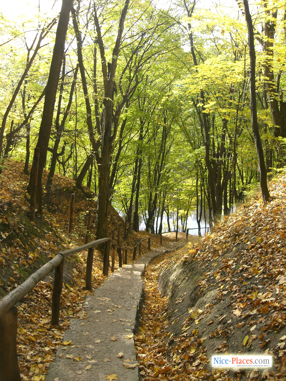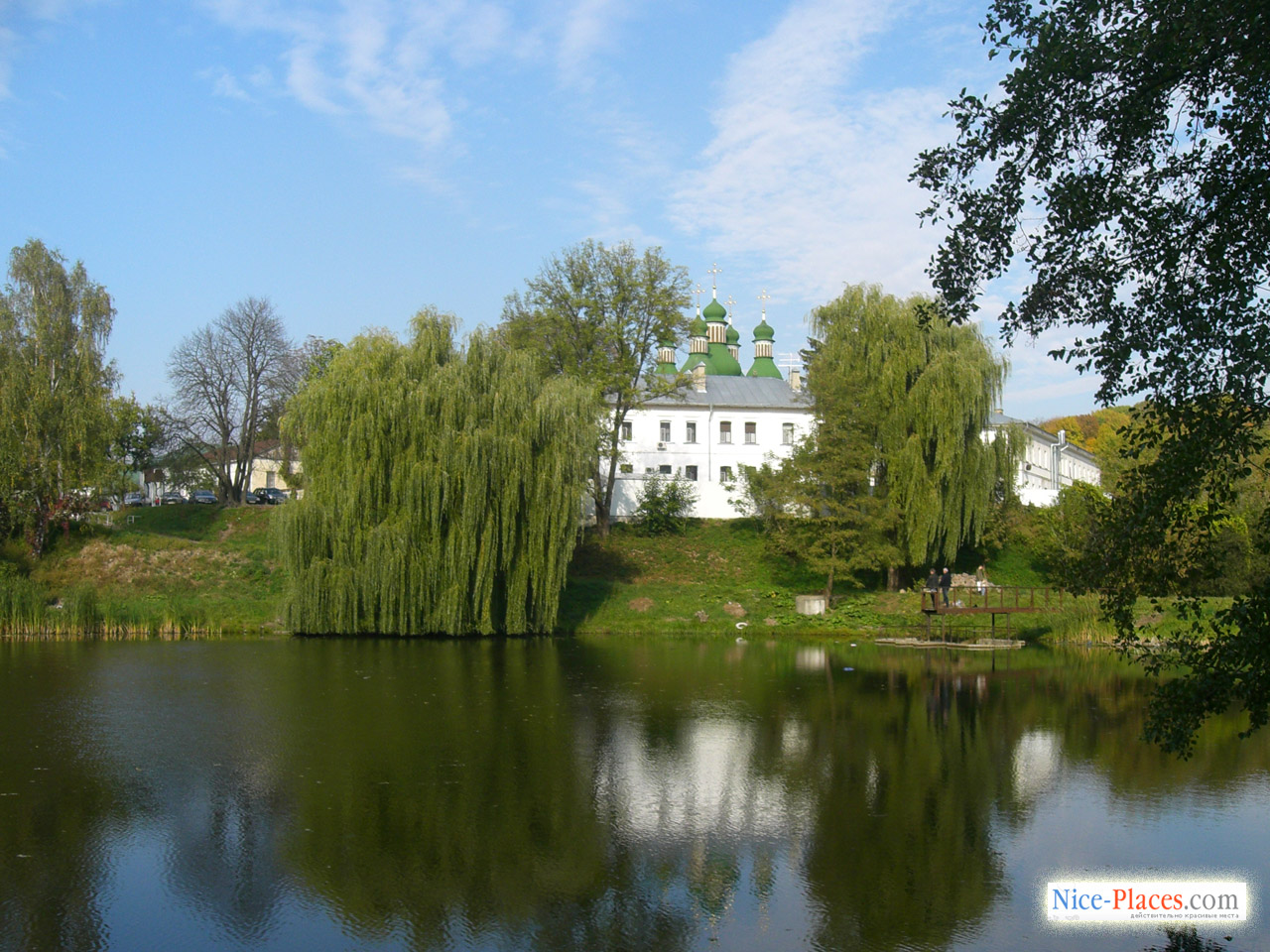 Пройдя по улице Китаевской до самого ее конца, можно выйти к небольшой возвышенности, с которой открываются изумительные виды на саму святыню и окружающий ее парк. В это время у каждого застывает дух при виде на изумительную долину, так не похожую на киевский ландшафт, а посреди деревьев поблескивают на солнце зеленоватые купола, создается впечатление, что попадаешь в другой, нереальный мир, в сказку, или совершаешь путешествие во времени. Хотя справа от парка можно увидеть современные многоэтажные строения, а слева – обыденные четырех и пятиэтажные «хрущевки», окруженные огородами, общую картину они не портят, просто всю эту «архитектуру» перестаешь замечать.
