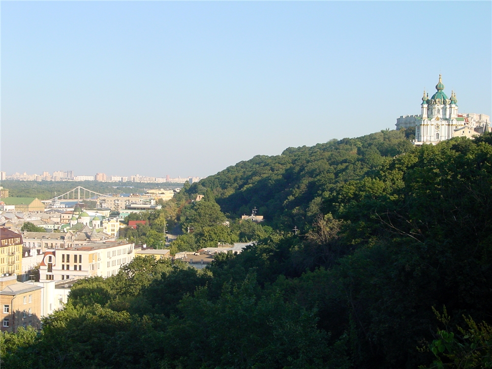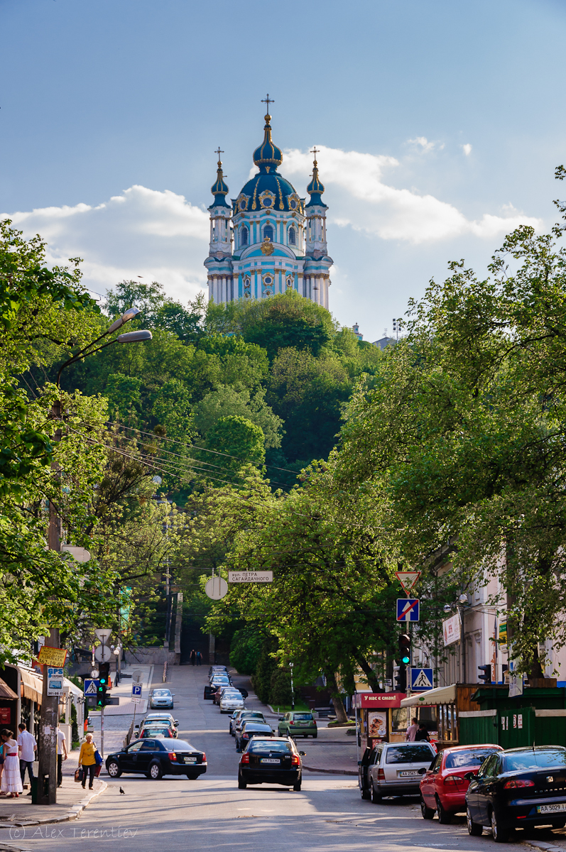 К восточной части Старокиевской горы примыкает одна из самых известных церквей Киева – Андреевская церковь, венчающая одноименную Андреевскую гору. Согласно легенде, Андреевская церковь была построена на месте креста, водруженного в І веке нашей эры учеником Христа апостолом Андреем Первозванным во время его путешествия по Восточной Европе. Именно Святой Андрей, согласно летописи «Временных лет», предрек Киеву мировую славу, нареча его “Градом Великим”. Несколько деревянных церквей, сгорая в веренице времен, сменяли на Андреевской горе друг друга, пока в середине ХVІІІ, для предполагаемого венчания дочери Великого Петра — императрицы Елизаветы Петровны не была возведена по проекту прославленного Б.Растрелли нынешняя великолепная Андреевская церковь. Сегодня – это одно из наиболее посещаемых мест в Киеве. И, хотя, церковь функционирует больше частью, как музей, здесь всегда много туристов, которые жаждут прикоснуться к многовековому искусству.