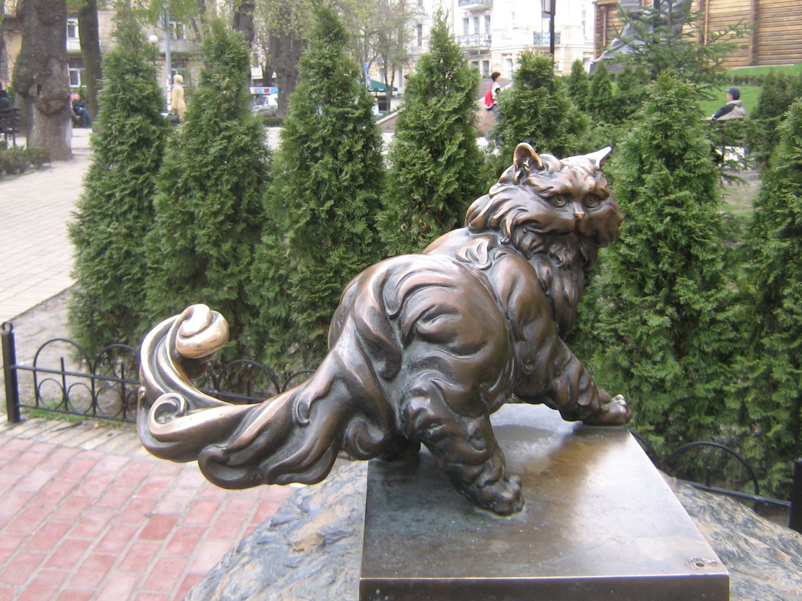 Памятник коту Пантелеймону. Памятник огромному коту, возле Золотых ворот, знает почти каждый киевлянин. Но интересна сама история о данном коте. Дело в том, что неподалеку от места, где установлен памятник, находится ресторан «Пантагрюэль». Одним из частых гостей ресторана был именно тот кот, который величается на постаменте. Он все время с невероятным удовольствием поглощал пищу из данного ресторана, и являлся его наилучшей рекламой.