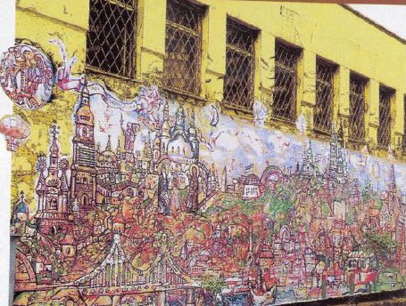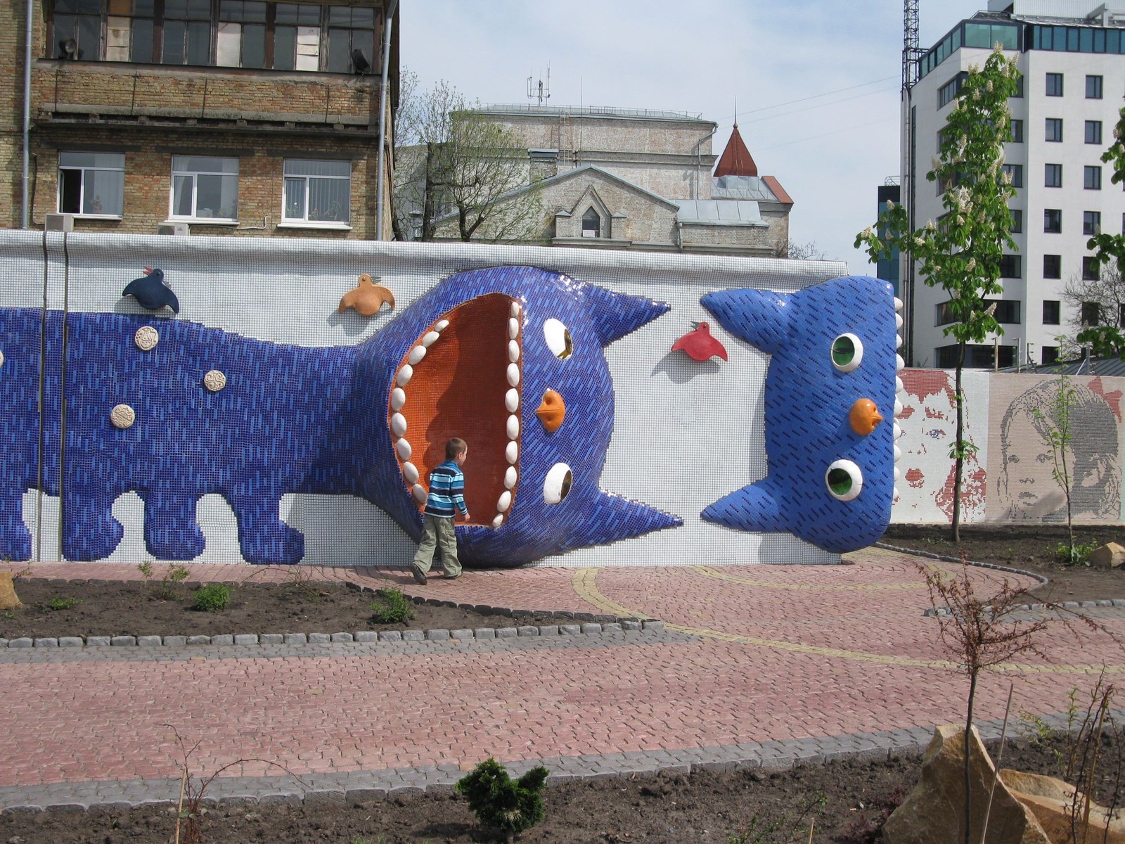 Достаточно много в Киеве домов, которые хронят на себе необычное творчество неизвестных художников. Это дом с жирафами, на улице Владимирской, разрисованная котельная пейзажами Лавры на Оболони, к сожалению уже не существующий, дом с нарисованными окнами на набережной и многие другие.