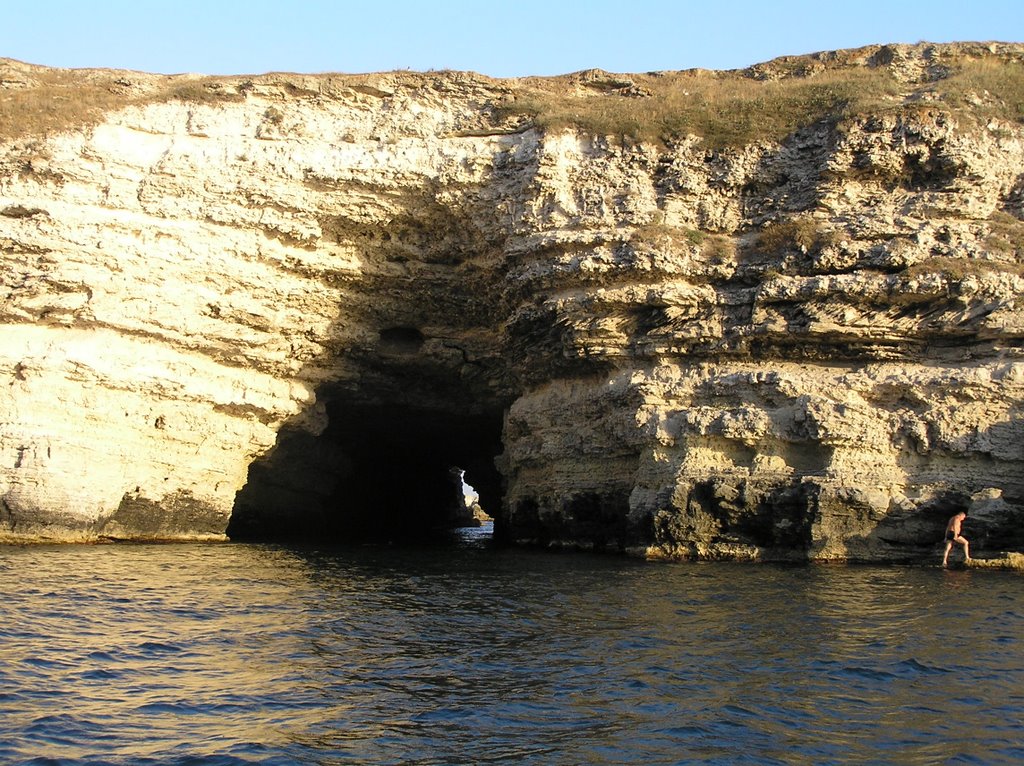 Необычной красоты на Тарханкуте и само побережье: строго вертикальные линии известняковых скал, обрывающиеся у самого моря. Такое впечатление, что бескрайняя степь, раскалившись под Крымским солнцем, решала искупнуться и сразу, без промедления, прыгнула в прохладные воды моря.