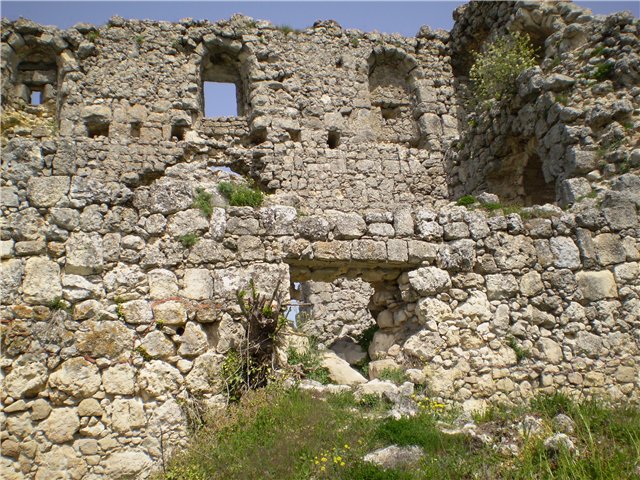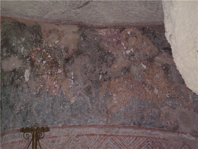 Сохранились руины храмового комплекса, являющегося местом пребывания православного епископа. Храм занимал значительную по тем временам площадь, в его восточной части и сегодня можно увидеть полукруглую апсиду со ступенчатой скамьей и вырубленным в скальной породе епископским креслом. В главной церкви города сохранились колонны из цельного камня, купель, в которой крестили малышей. В городе сохранились остатки и других церквей, в том числе базилики, построенной еще в VIII веке, но особое внимание историков, археологов и туристов привлекает небольшой храм «Тех всадников», вырубленный внутри округлой каменной глыбы. Этот храм, несмотря на небольшие размеры, знаменит сохранившейся фреской, на который изображен убивающий дракона Георгий Победоносец в сопровождении двух других всадников. Время не пощадило фреску – краски на ней уже давно потеряли цвет, а фигуры всадников различимы с трудом. К сожалению, в ближайшие десятилетия данное произведение религиозного искусства будет утрачено навсегда.