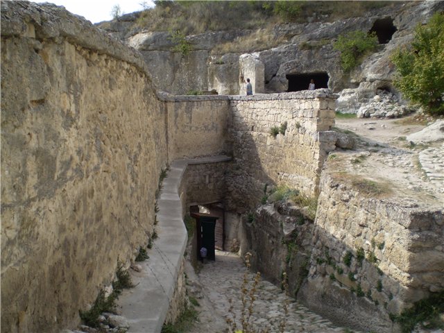 Большинство наших соотечественников, отправляясь в Бахчисарай – столицу Крымского ханства, даже не подозревают о том, что недалеко от ханского дворца находятся и другие, не менее интересные достопримечательности. К таким достопримечательностям, привлекающим внимание не только туристов, но и интеллигенции, историков, археологов и других ученых, относится пещерный город Чуфут-Кале и Свято-Успенский пещерный монастырь. От центра Бахчисарая к этим памятникам средневековой архитектуры можно добраться пешком по тропе, которая ведет на вершину горного плато. По этой древней дороге жители Чуфут-Кале возили в город и из города все необходимые товары. Поднимаясь в гору, и сейчас можно увидеть следы каменной кладки – это остатки мощеной дороги.