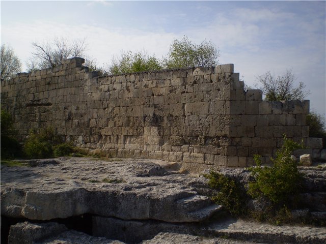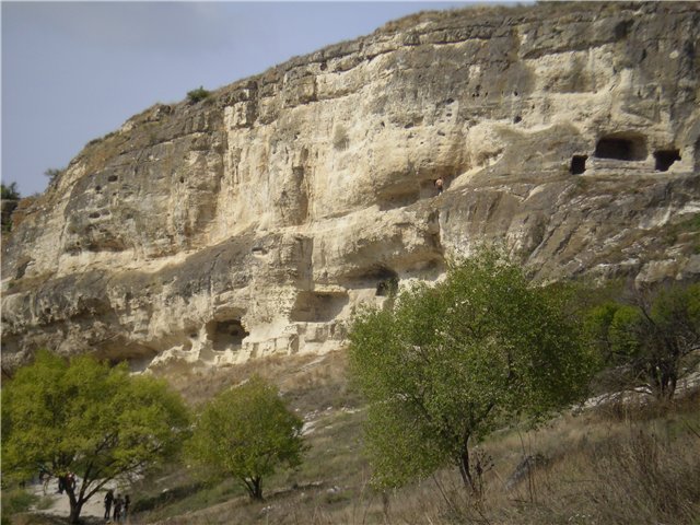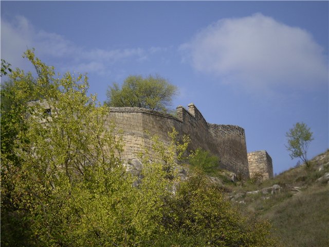 Еще издали, на полпути к древнему пещерному городу, можно увидеть остатки оборонительных стен, возвышающихся на высокой, практически неприступной скале. Это пещерный город Чуфут-Кале, который в настоящее время является уже мертвым городом. Чуфут-Кале сохранился намного лучше, чем все другие пещерные города Крыма. Да и его история коренным образом отличается. Построенный еще во времена раннего средневековья, как и другие пещерные города – Мангуп, Эски-Кермен, Бакла, Чуфут-Кале после опустошительного разрушения татарами в 1299 году и полного захвата крепости войсками крымского хана Джанибека в 1340-х годах не стал мертвым и заброшенным городом. Напротив, пещерный город стал первой столицей Крымского ханства еще задолго до строительства Бахчисарая.