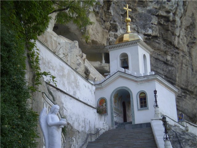 Подходя к ближе к Бахчисараю, можно увидеть еще одну достопримечательность – пещерный Свято-Успенский монастырь, основанный в VIII выходцами из Византии. Деятельность монастыря не прерывалась даже в эпоху Крымского ханства, а финансовую поддержку православным жителям Крыма оказывали русские цари. Кельи монахов находились в пещерных помещениях, вырубленных в отвесных скалах, в долине располагалось монастырское кладбище, хозяйственные постройки, цветущие сады, дом настоятеля. И только во времена советской власти, в 1921 году Свято-Успенский монастырь постигла та же тяжелая участь, что и другие церкви и монастыри Советского Союза. Монастырь был закрыт, монахи разогнаны, настоятель расстрелян, а богатое имущество монастыря, накапливаемое в течение многих веков, разграблено. Многие святыни были утрачены навсегда, а деятельность монастыря, во времена Крымского ханства являющегося форпостом православия в Крыму, была прекращена на многие десятилетия.