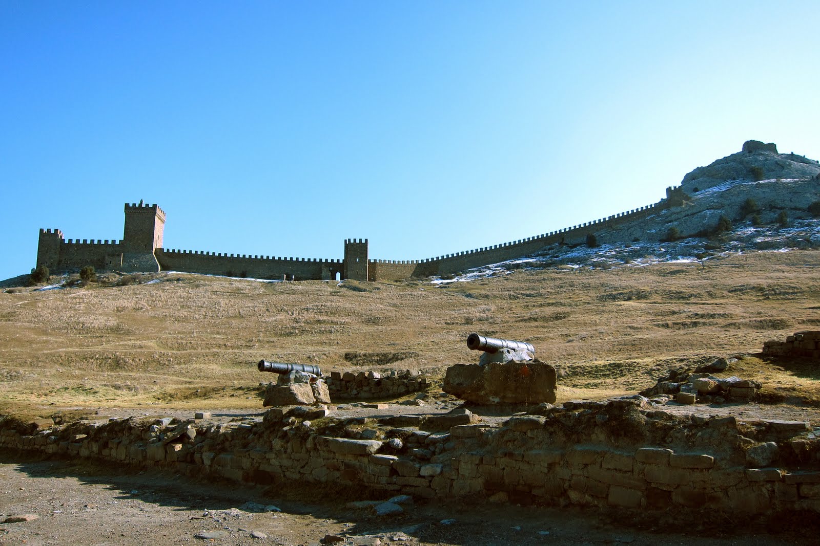Генуэзская крепость – это не только великолепный памятник средневековой архитектуры, но еще и единственная в своем роде цитадель, сохранившаяся до наших дней на Крымском полуострове. Возведенная генуэзцами в период с 1371 по 1469 годы, как опорный пункт колонии Солдайя, крепость удивляет совершенством инженерной мысли. Ее площадь составляет почти 30 гектаров, она располагается на конусообразной возвышенности – античном коралловом рифе. Генуэзская крепость включает в себя 14 башен, сохранившихся до наших дней, и состоит из двух ярусов обороны: нижнего, представляющего собой массивную внешнюю стену высотой 7-8 метров и толщиной более 1,5 метров, укрепленную боевыми башнями, и верхнего, состоящего из Консульского замка и комплекса Дозорной башни.