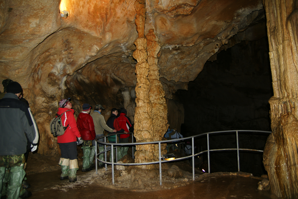 За палеонтологическими находками маршрут ведет к Главному залу. Он впечатляет своей грандиозностью. Потолок Главного зала возвышается на 42 м, а сам он протянулся почти на 120 м.