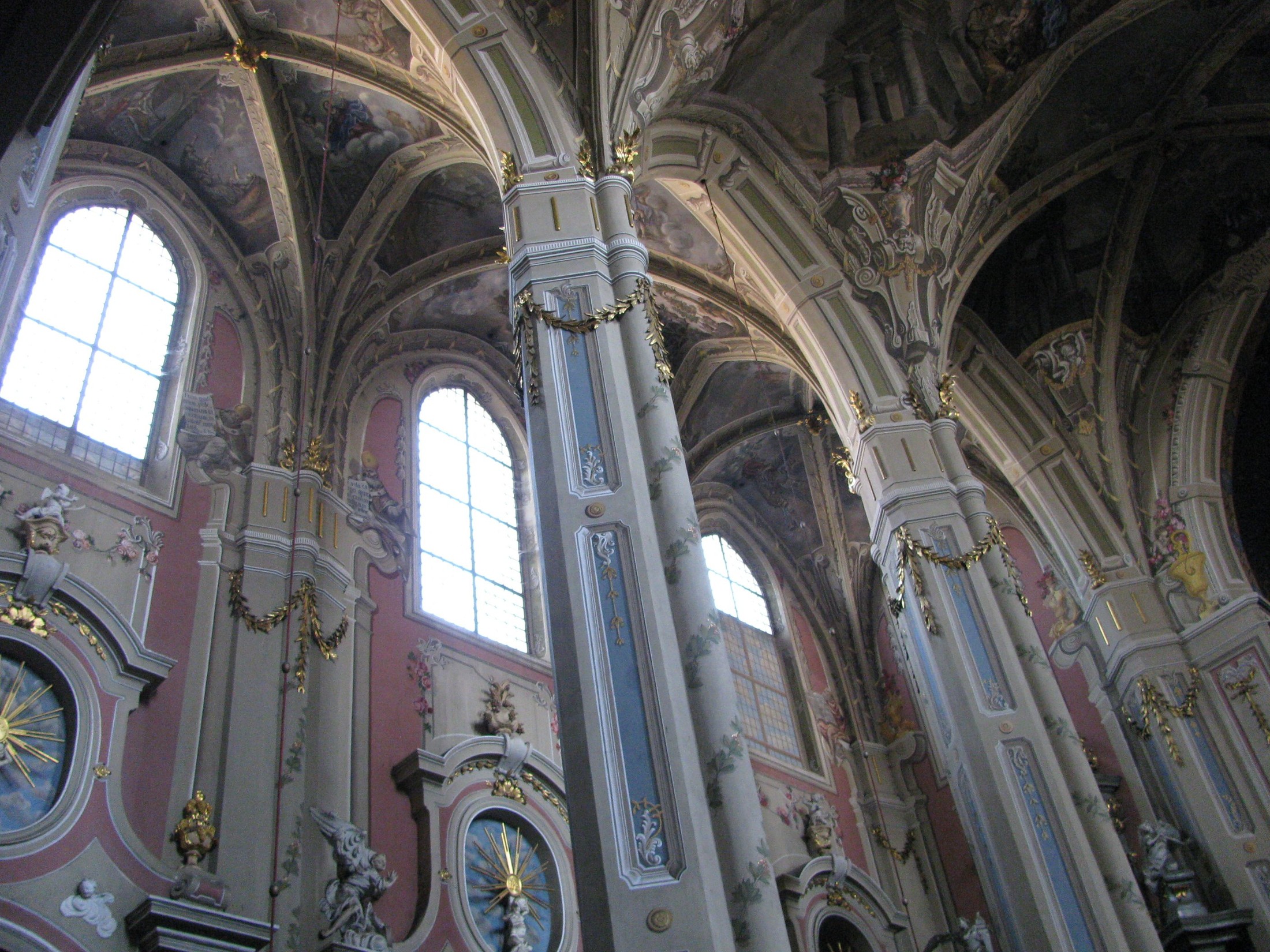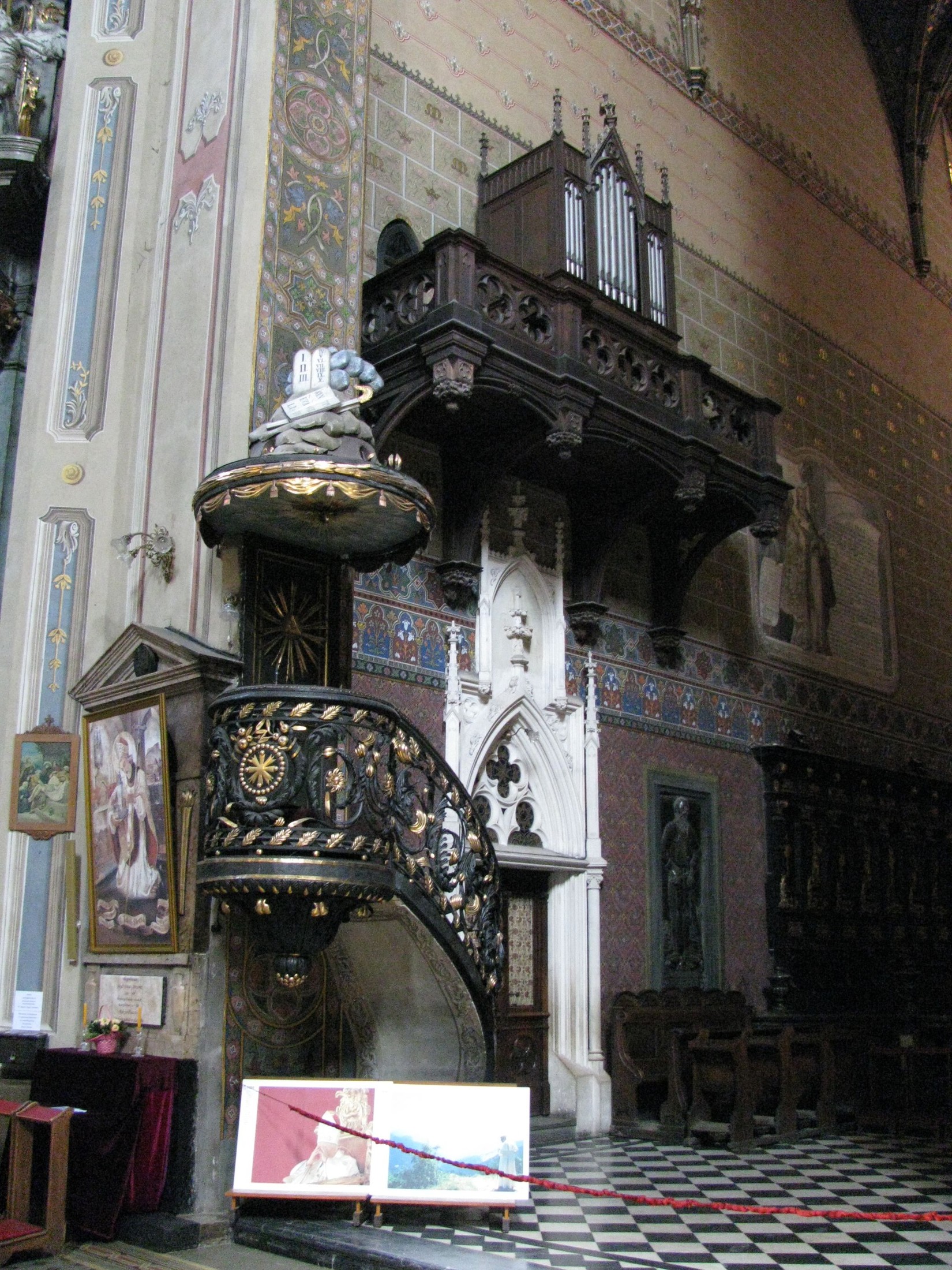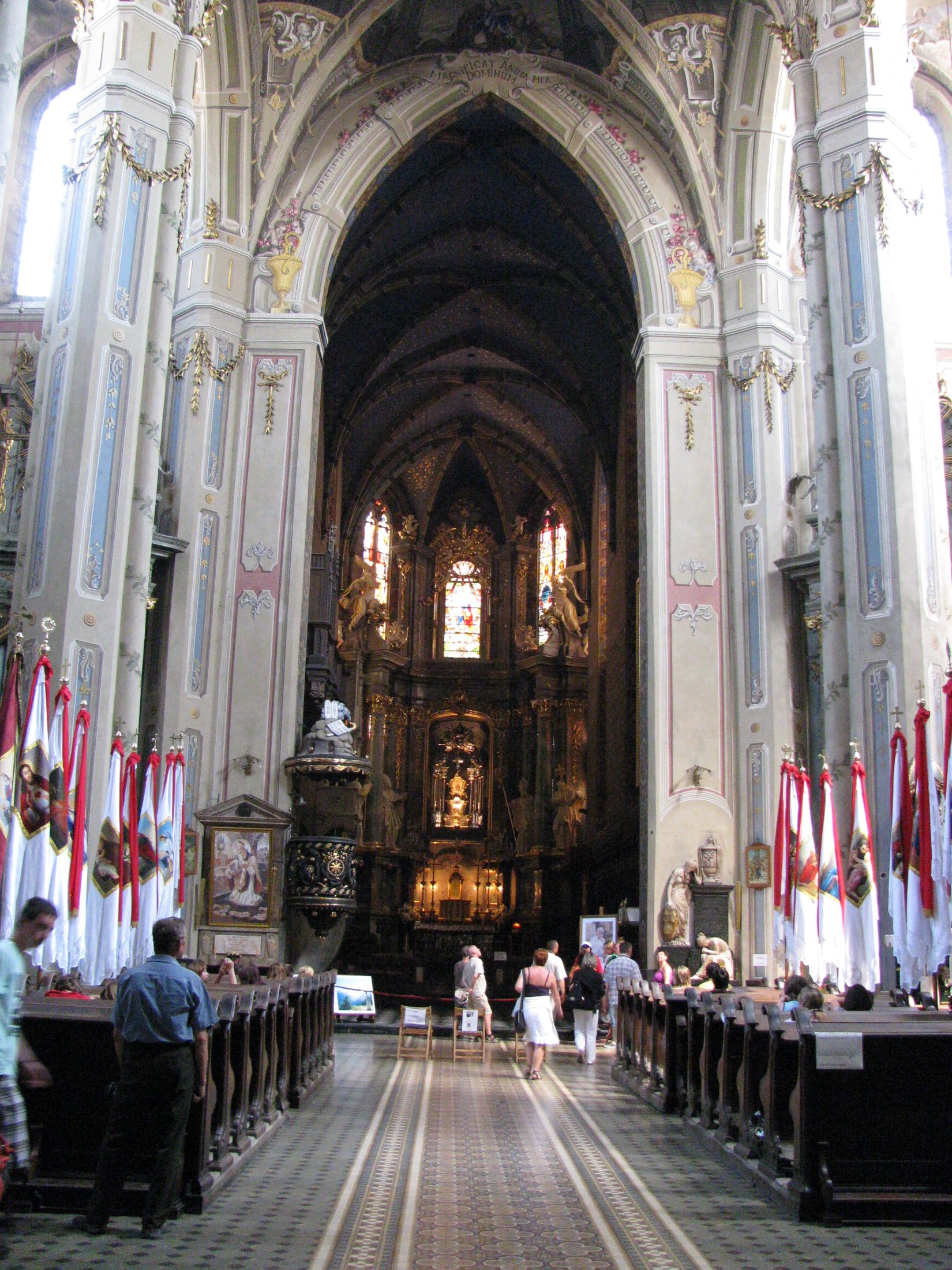 Здесь же, опять-таки в нескольких шагах, расположен готический Кафедральный собор со звонницей в стиле барокко. Простояв на этом месте 6 веков, красавец-собор несколько раз сгорал и каждая реконструкция оставляла на нем отпечатки определенной эпохи. Собор украшен элементами готики, ренессанса, барокко и классицизма.