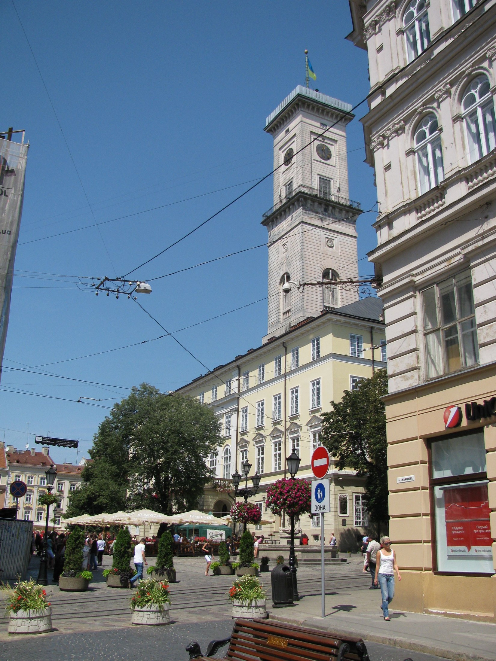 Центр площади – Львовская ратуша, здание администрации. Возведено здание в 1835 году в стиле венского классицизма. Квадратное сооружение с внутренним двориком за всю свою историю было свидетелем многих исторических событий, неоднократно горело и терпело крушение. В 1852 году Ратуша была реконструирована и теперь там находится городской совет Львова. Над зданием возносится башня с часами и смотровой площадкой, с которой открывается изумительный вид на город.