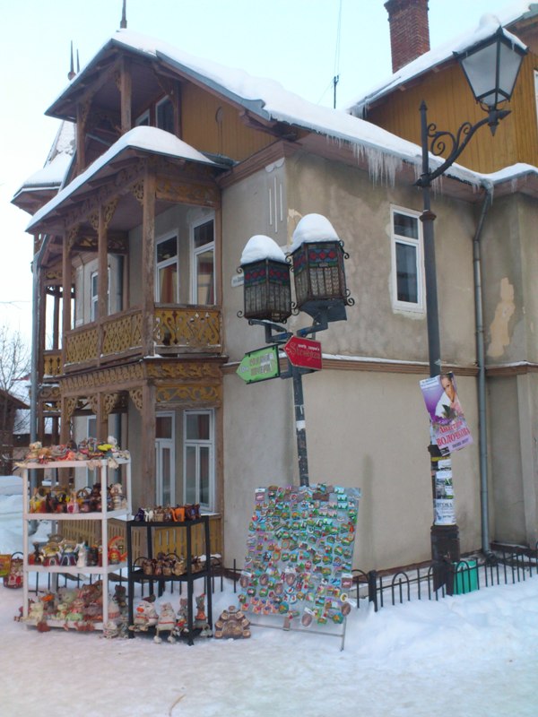 Продолжая тему местного колорита, расскажу о празднично украшенных домах и наряженных ёлках в середине февраля. Мы подумали было, что массовая лень или морозы не позволяют вынести ёлку до весны, но предположения оказались далеки от истины. Жители окрестностей Карпат весьма набожны и соблюдают местные традиции, рождественские украшения остаются на своих местах вплоть до середины февраля – праздника Сретенья, когда зима встречается с весной и начинает уступать свои права. Крайняя религиозность проявляется во множестве ликов Богоматери с младенцем: в каждой процедурной комнате, в номерах, во дворах в виде статуй. На территории города располагаются греко-католическая, римско-католическая, православная московской епархии и православная киевской епархии церкви, а также множество других храмов, как здесь любят говорить «Бог один, но каждый ходит к нему по-своему».