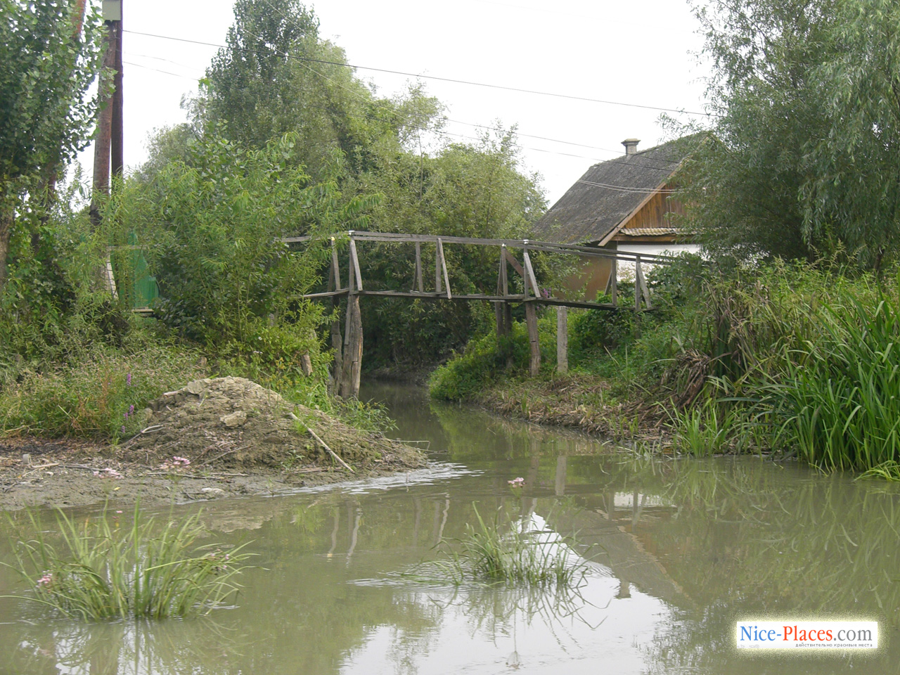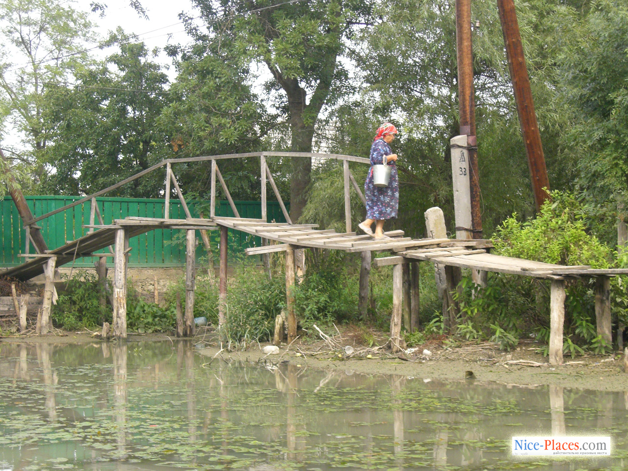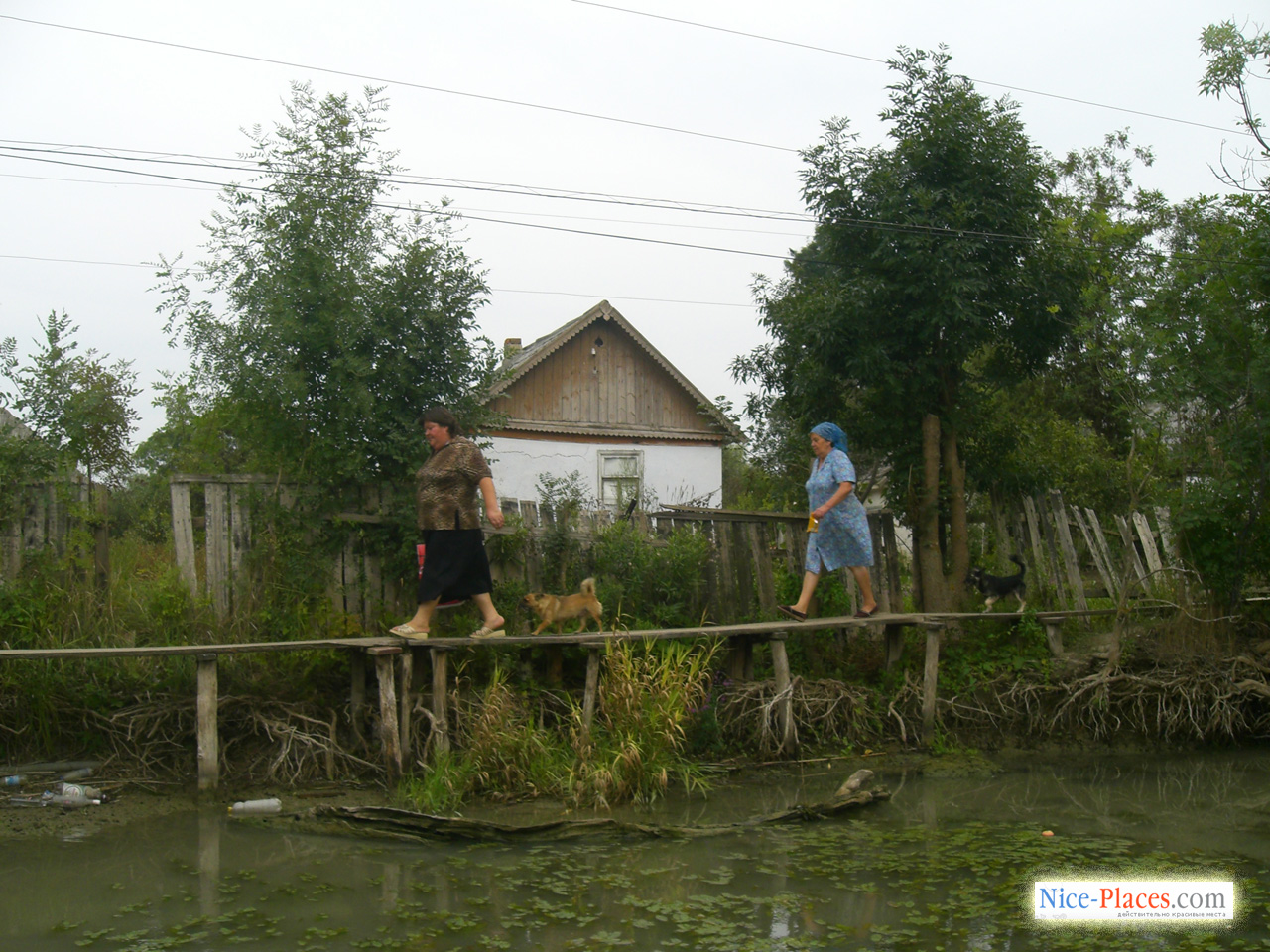 Вилково — это место слияния вод Дуная и Черного моря, жемчужина придунайского низовья, "Украинская Венеция", расположенная прямо у моря на границе с Румынией. Необычность города в том, что старая часть города расположена на воде. Вместо улиц там — каналы, по которым перемещаются, в основном, на своеобразных украинских "гондолах" (изготавливают здесь же) и моторных лодках. В городе по каналам плавают стоя на корме лодки и отталкиваясь шестом. А как вам, к примеру, адрес: Белгородский канал, 24. Это у них что-то вроде центрального проспекта. Плывешь, а вокруг — беленые чистые домики, небольшие огороды, удобренные илом, деревянные кладки по сторонам каналов 1-2 метра шириной. Каналы зовут ериками. Они окаймлены колышками из ивы, защищающими береговую линию. Ива растет быстро и закрепляет берег. Потом ее вырубают на дрова и подсаживают новые колышки. Вдоль домов – узкие дощатые кладки. Сейчас многие ерики затянуты илом, и горожане держат свои лодки у моста в белгородском канале. А прежде тому, чей ерик не прочищен, не давали разрешения на выход в Дунай. Через ерики перекинуты простенькие деревянные мостики. Верх мостков не закреплён. Если на лодке перевозится негабаритный груз, то верх моста снимают, а когда лодка проходит, ставят на место. Получается, что мосты разводные.