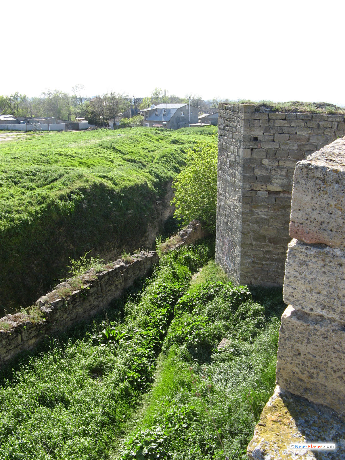 Протяженность оборонительных стен около 2,5 км, высота стен и башен от 5 до 15 м, толщина от 1,5 до 5 м. С севера крепость омывается водами Днестровского лимана, с трех остальных сторон окружена глубоким рвом, вырубленном в скале. Первоначально ров заполнялся водой, его глубина составляла около 20 м, ширина 14 м., роме того, внутренняя стена рва продолжалась до роста человека и служила защитой для тех, кто охранял его. В стены крепости было встроено 34 башни, разные в плане, по высоте и назначению. 12 из них — полы внутри, представляли собой жилые помещения, приспособленные для самостоятельной обороны и хранения общественных запасов зерна.