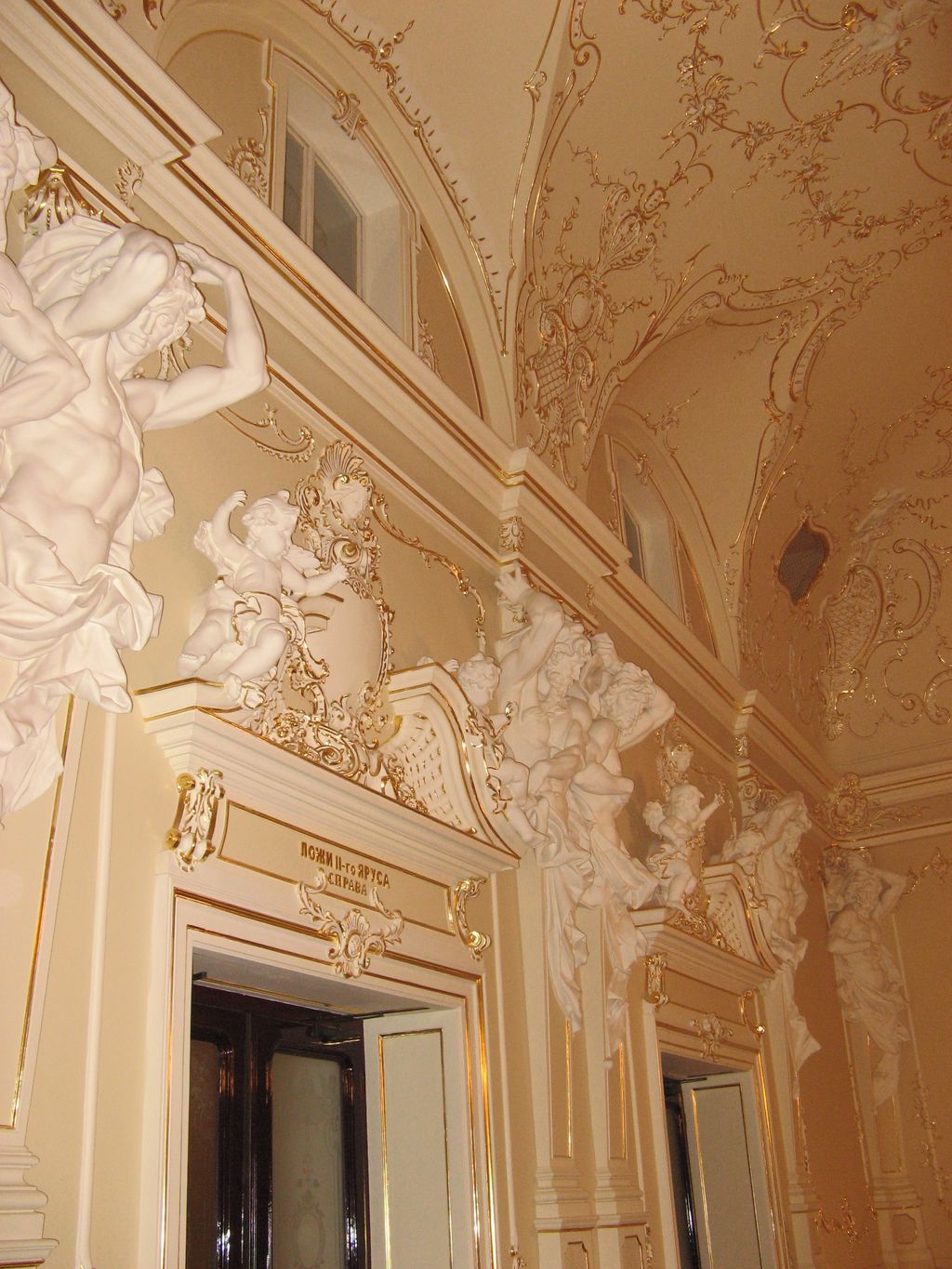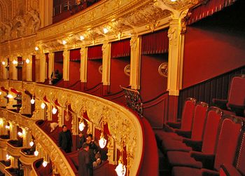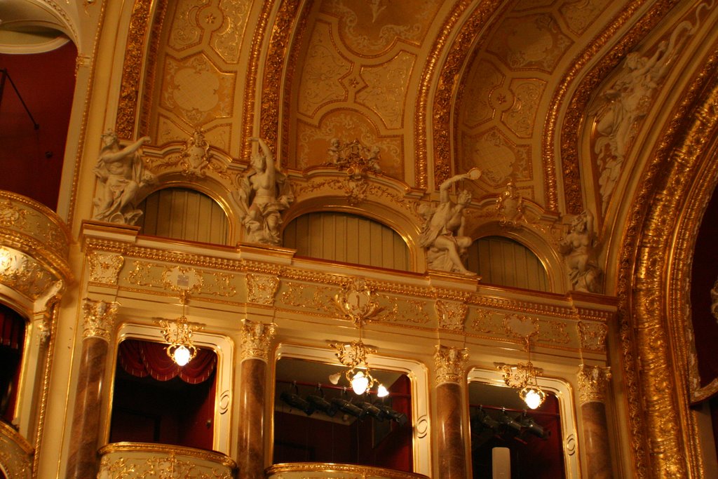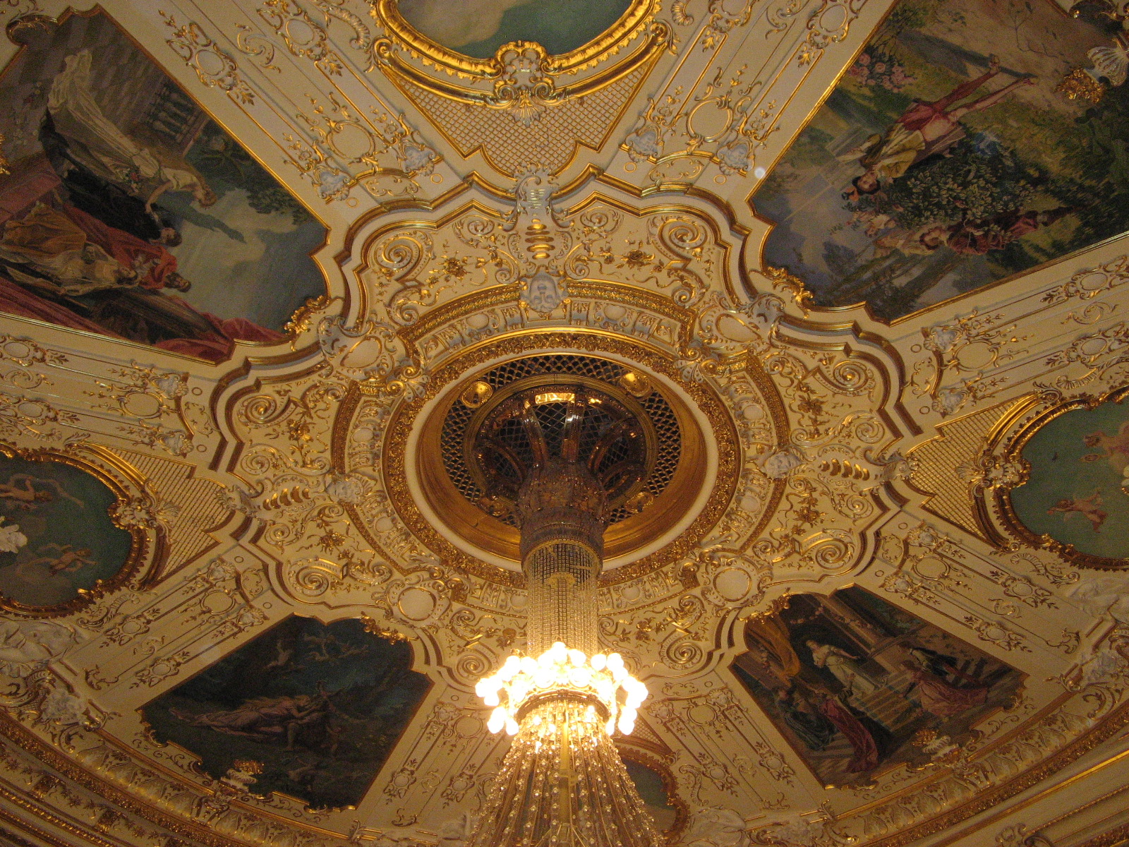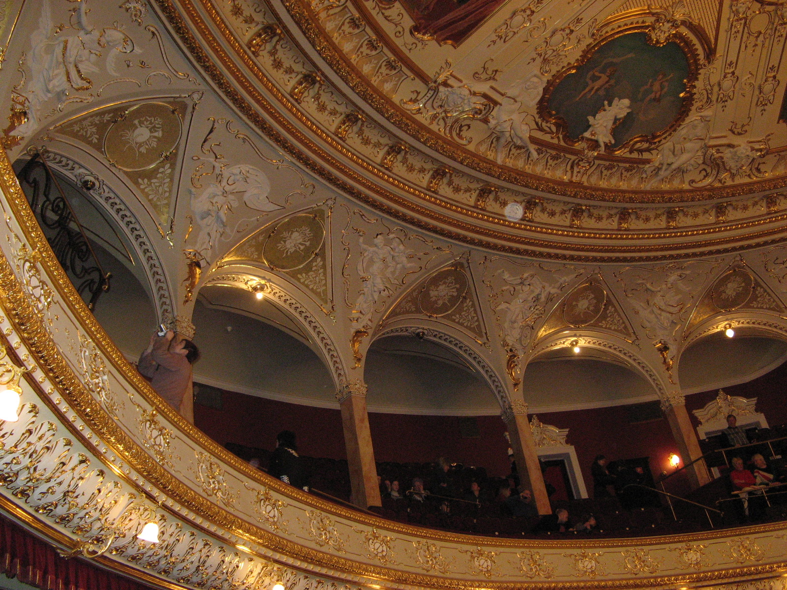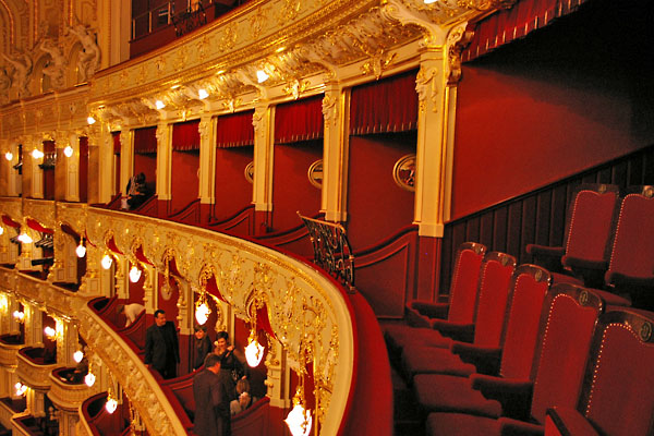 В серии статей об Одессе мы уже писали о Театре Оперы и Балета, но там речь шла об истории и архитектуре самого здания. Однако, внутреннее убранство театра и особенно зрительный зал заслуживают не меньшего внимания. Созданный по образцу Парижской Оперы, интерьер театра насыщен позолоченной отделкой в ренессансно-барочных формах, ложи обиты красным бархатом, а под расписным потолком переливается огромная хрустальная люстра.
