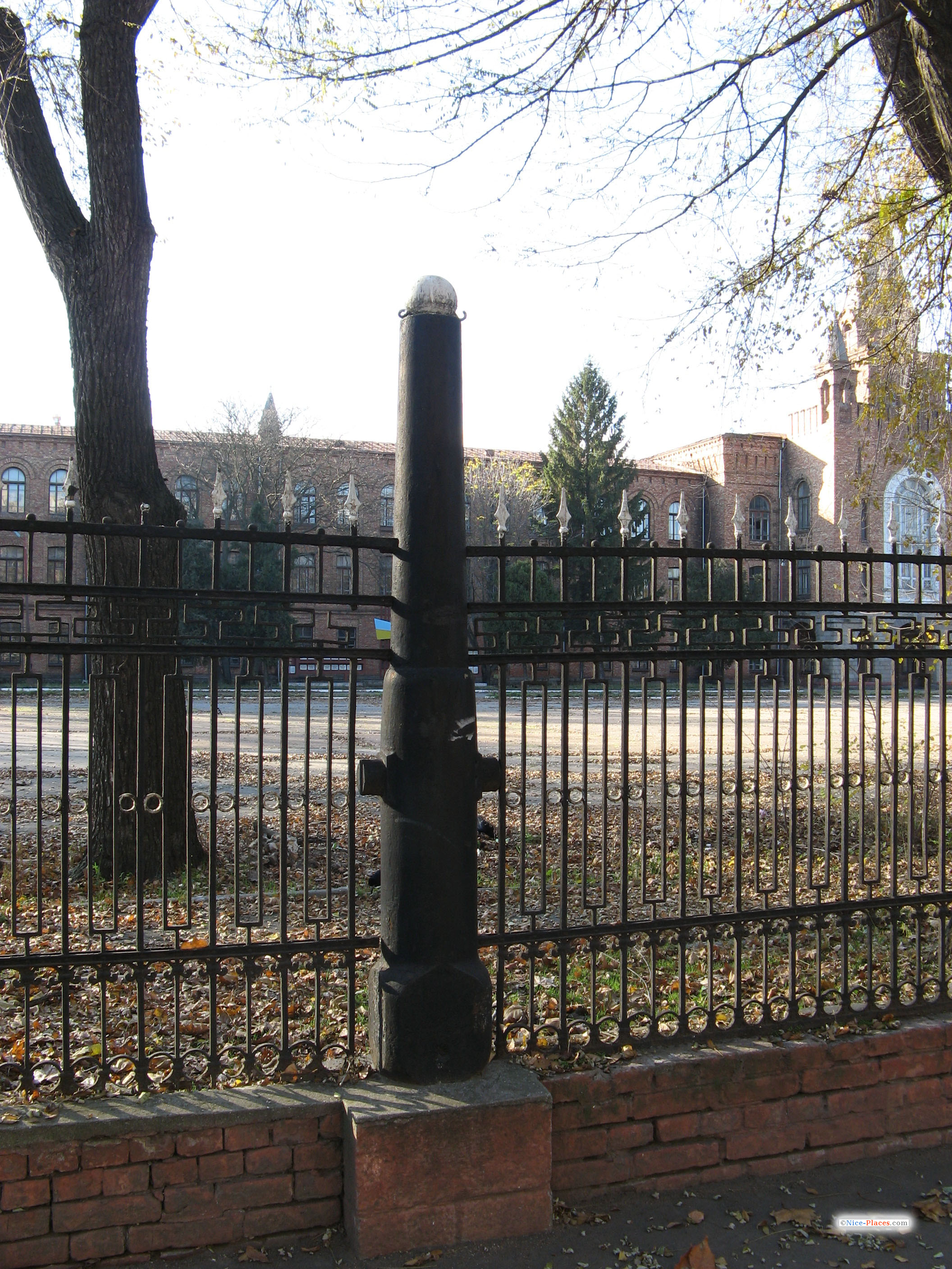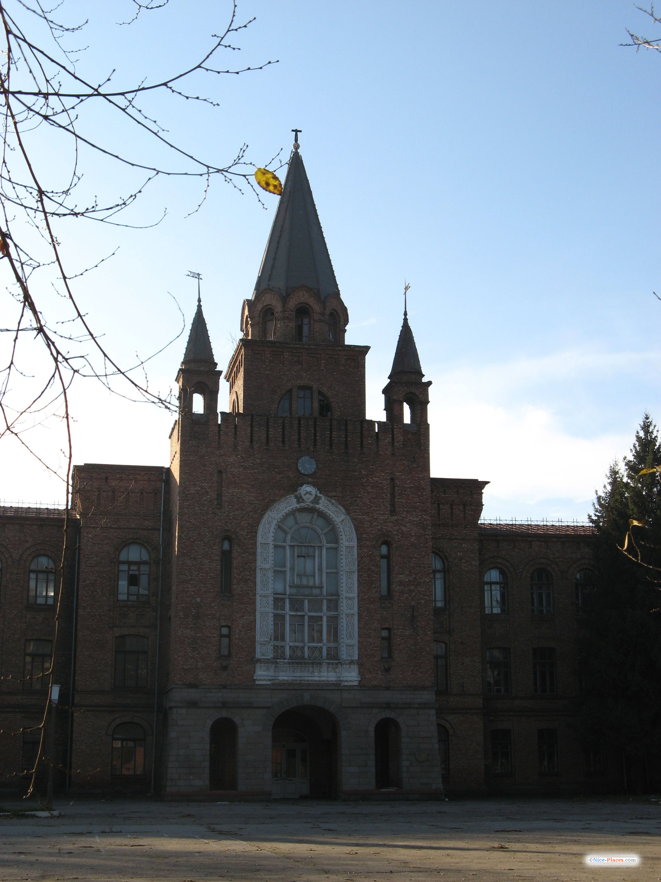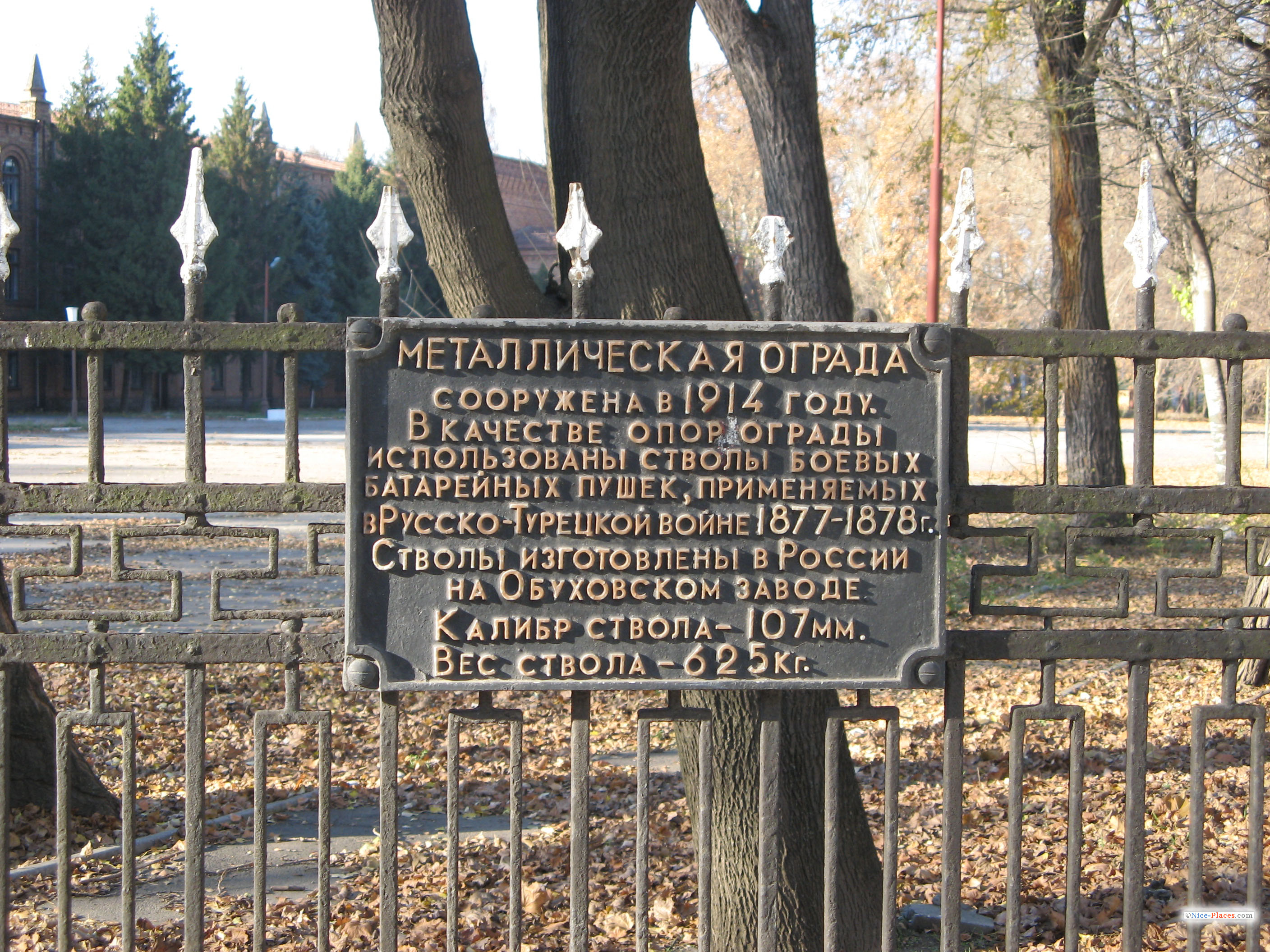 Продолжим наш путь дальше по Фонтанской дороге до 3 станции Большого Фонтана, где располагается еще одно сооружение бывшей "сухопутки" со значимым историческим и архитектурным значением. Это корпус Сергиевского артиллерийского училища. Здание выполнено также из красного кирпича в духе фортификационных сооружений России XVI-XVII вв., в этом же стиле выполнен и Московский Кремль.Но сначала несколько интересных фактов об ограде, которая отделяет училище от Фонтанской дороги. В качестве опор этой ограды были использованы артиллерийские стволы 107-миллиметровых пушек образца 1877 года. Вес ствола пушки 625 кг. Эти пушки использовались в русско-турецкой войне 1877-1878 годов, которая, как известно, закончилась освобождением болгарского народа от турецкого ига. К верхушкам стволов приварены металлические ядра. Эта ограда уникальна, точно такой больше нигде нет.