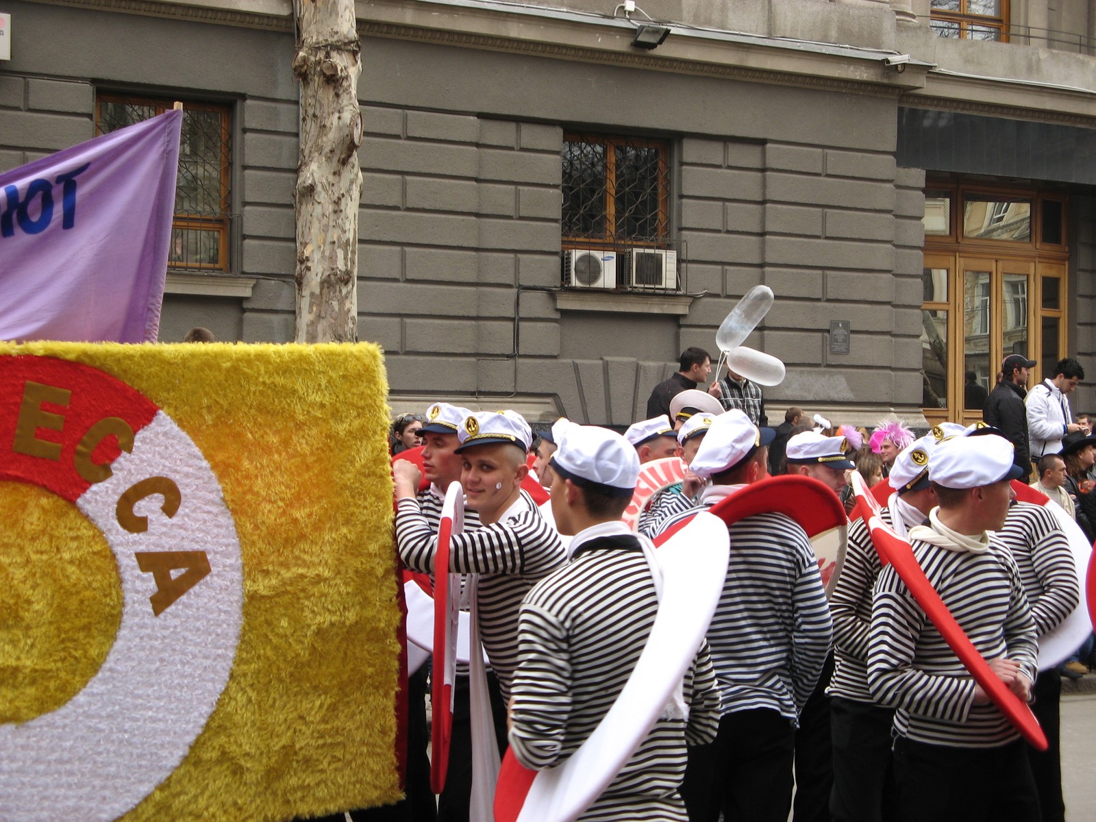 В 16:00 началось традиционное карнавальное шествие от улицы Садовой через Дерибасовскую и на Куликово поле, где Юморину продолжили гала-концерт, праздничный фейерверк и дискотека для молодежи.