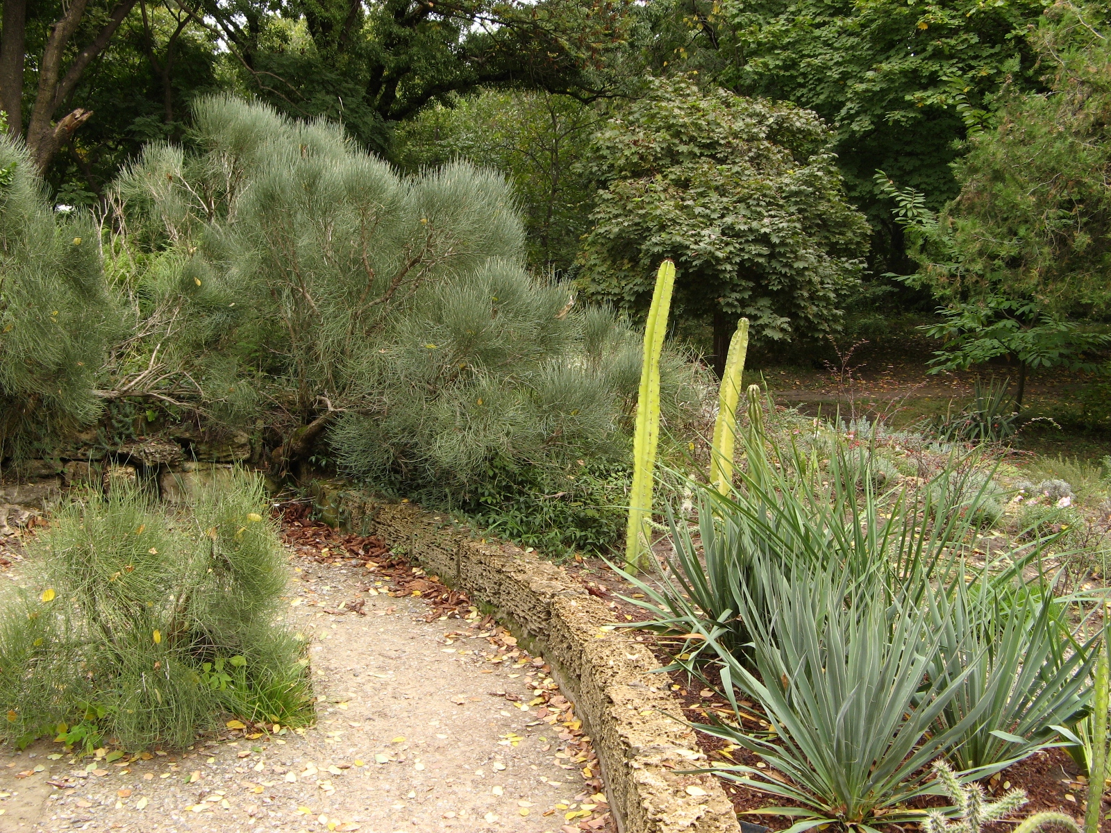 В саду действительно очень много разных необычных видов кустов и деревьев, которые мы видели только на картинках или вообще не видели. Очень много видов хвойных: сосны с вниз и вверх растущими иголками, ели, кедры, огромные лиственницы, можжевельники и многие другие. Единственное неудобство, которое испытываешь в саду без экскурсовода это то, что очень мало табличек с названиями растений. Нам на весь сад попалось только штук 10-15.