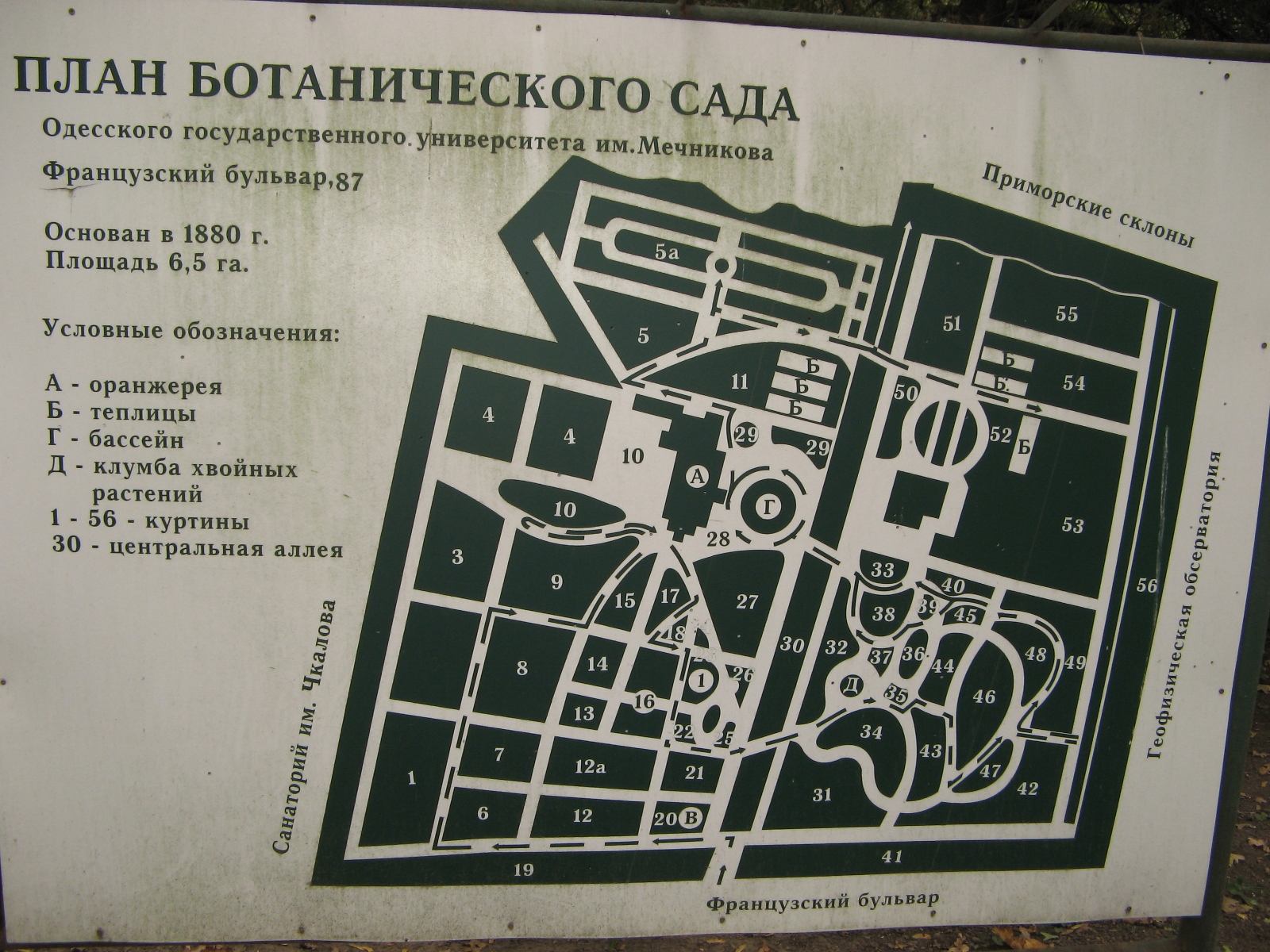 Одесский Ботанический Сад с фото и картой