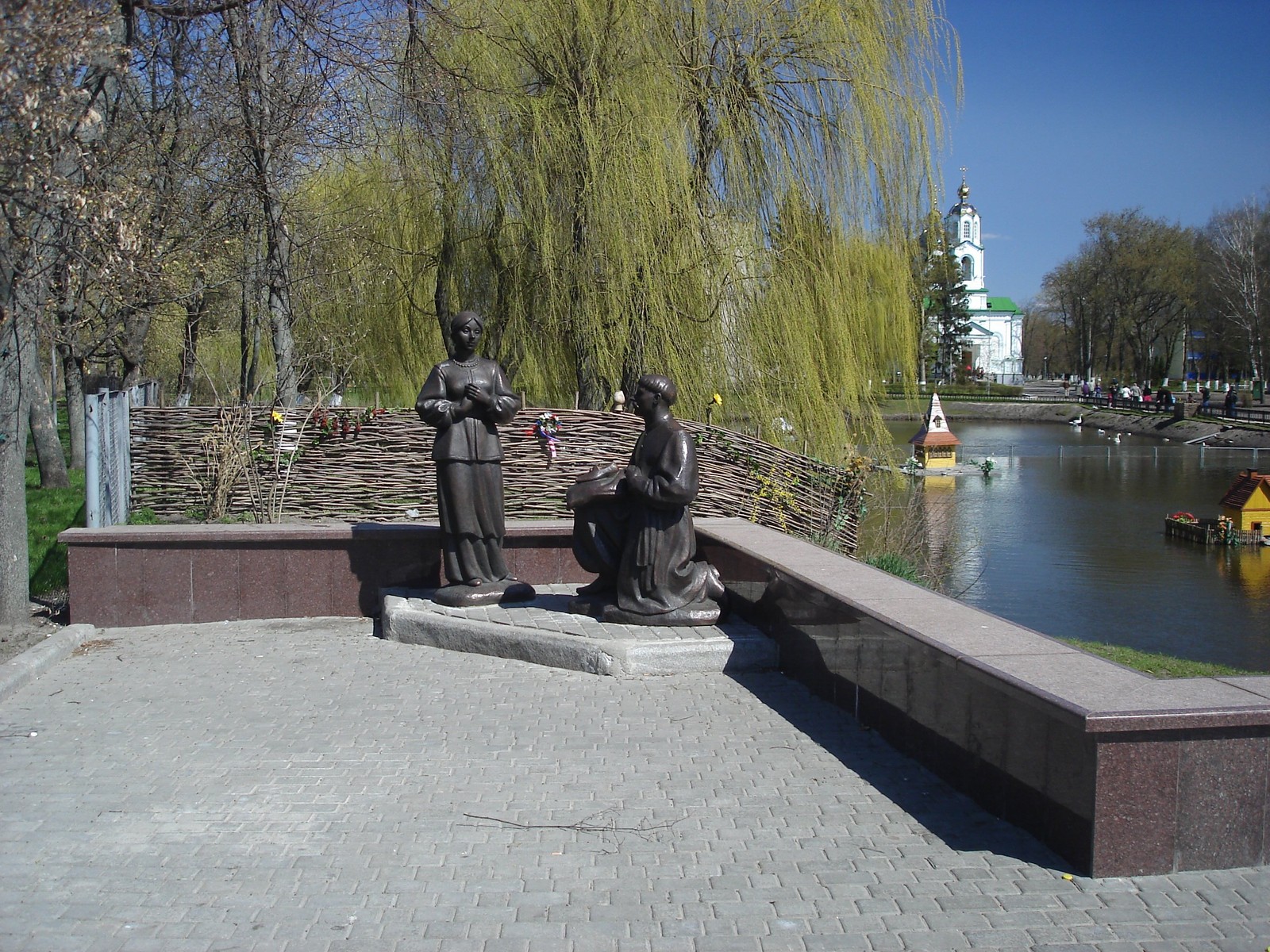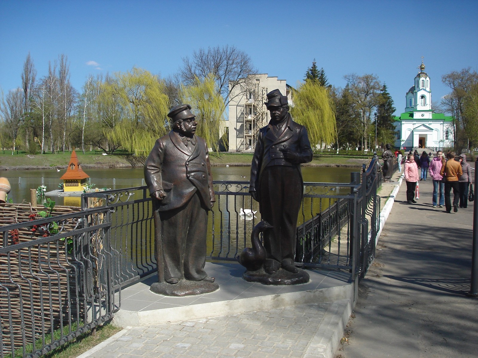 Место, которое в первую очередь стоит посетить в Миргороде, это знаменитая «Миргородская лужа». Свое название этот небольшой пруд, находящийся в самом центре города, недалеко от Успенской церкви, получил в повести Н.В Гоголя «Как поссорился Иван Иванович с Иваном Никифоровичем». В честь двухсотлетия со дня рождения великого писателя, в 2009 году тут был открыт прекрасный скульптурный комплекс, многочисленные герои гоголевских повестей и рассказов предстают перед путешественником во всей своей красе. Основа комплекса – огромный, трехметровый памятник писателю. Пруд имеет небольшие размеры, однако гости города, рассматривая скульптуры, которые, кажется, вот-вот оживут и начнут свои бесконечные споры, могут провести здесь почти целый день. Совсем недалеко от пруда, кстати, можно посмотреть домик, в котором непосредственно и произошла знаменитая ссора.