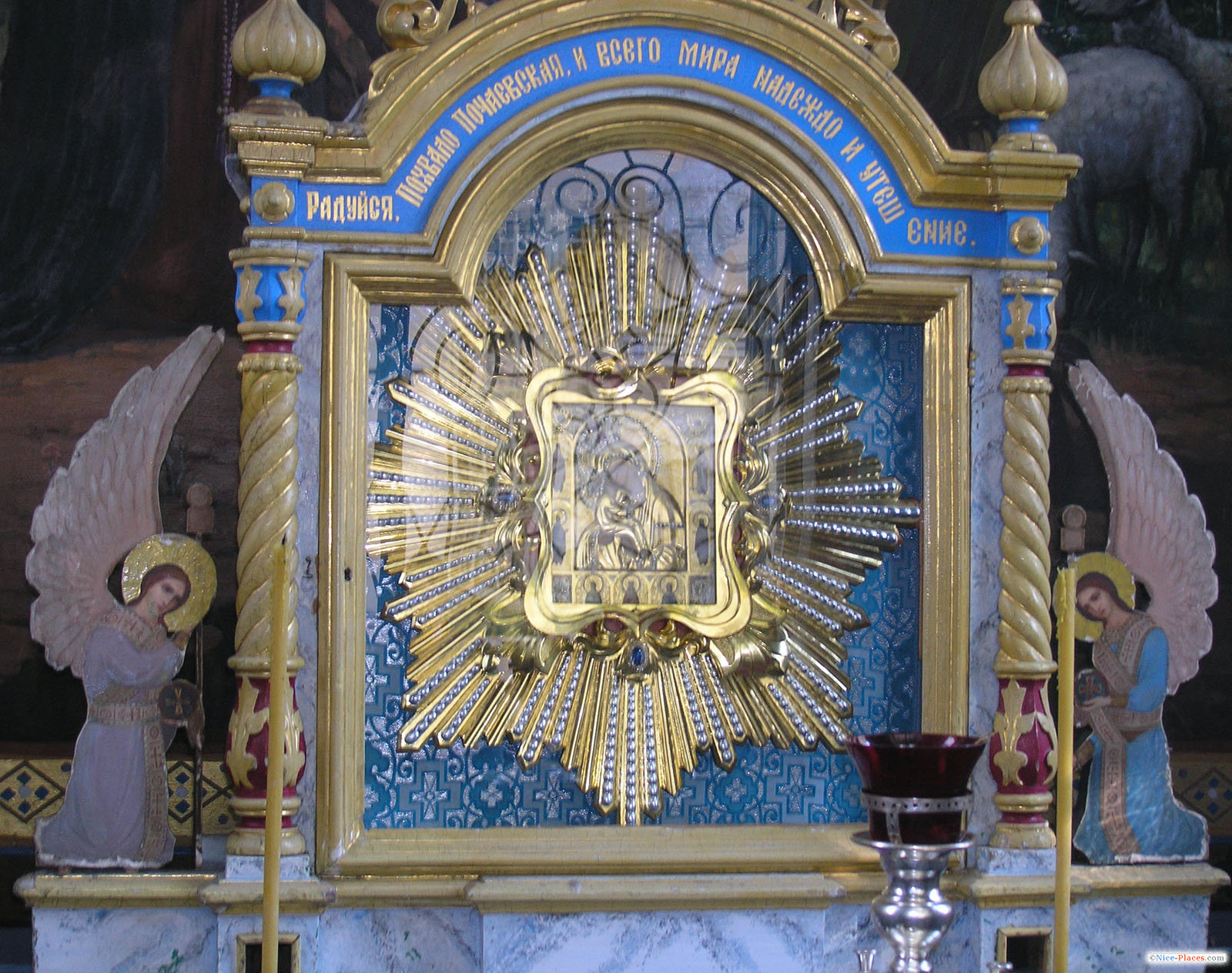 Так Царица Небесная увековечила Свою Славу на Почаевской горе еще одной святыней: Чудотворной Иконой. Чудотворная Икона находится в Успенском соборе над Царскими вратами в звездноподобном киоте.