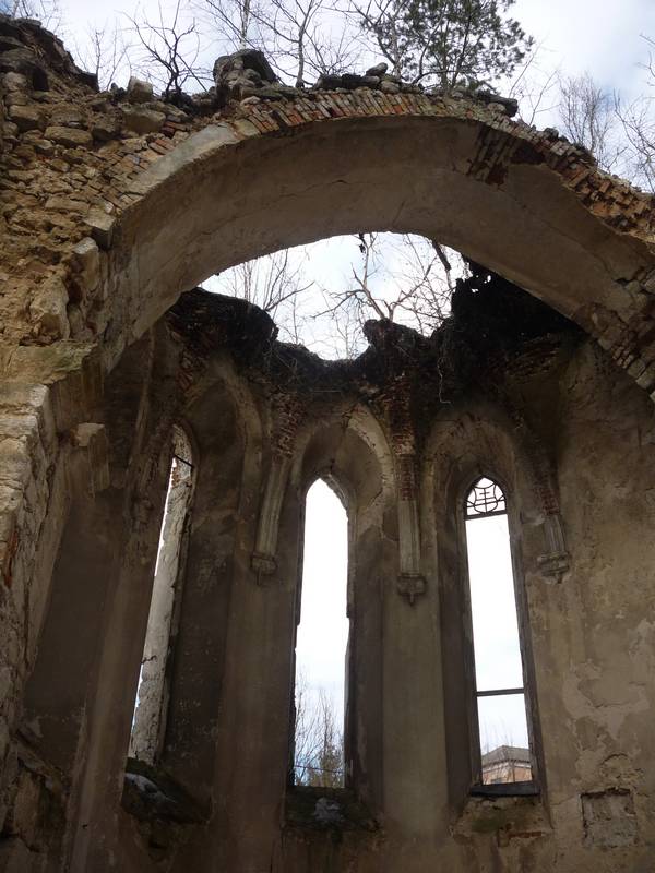 Уже вскоре, идущая на северо-запад дорога выводит к старинному городку Заложцы, где в конце заснеженной аллеи виднеются руины необычного замка. Только его очень непросто разглядеть с трассы. Ориентиром служит церковь, стоящая на берегу огромного озера. За ней метрах в трехстах и находится цитадель, надежно укрытая густыми зарослями кустарников.Возведенный в начале XVI века замок отличается своей удивительной миниатюрностью. Протяженность каждой из четырех крепостных стен не превышает шестидесяти метров. Когда-то по углам возвышались четырехъярусные башни. Через глубокий ров, заполненный водой, был перекинут подъемный мост. Въездные ворота, украшенные белокаменным порталом, открывали путь во двор, где стояли двухэтажные казематы. Рядом располагался небольшой дворец.