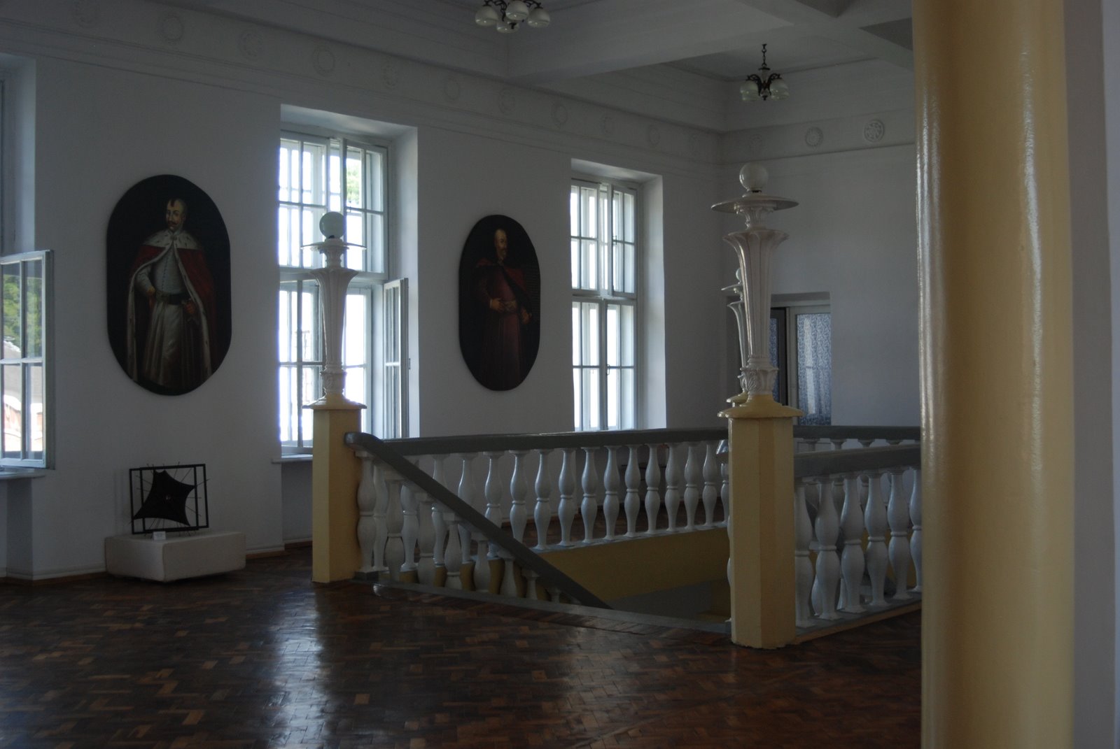 Посреди замковой территории находится роскошный дворец, выполненный в стиле ренессанс, в ней сейчас представлены музейные экспозиции, включающие портреты князей Вишневецких и Потоцких, которым когда-то принадлежала каменная твердыня. Особенно привлекает коллекция старинного оружия и мощные пушки, необычная этнографическая экспозиция.