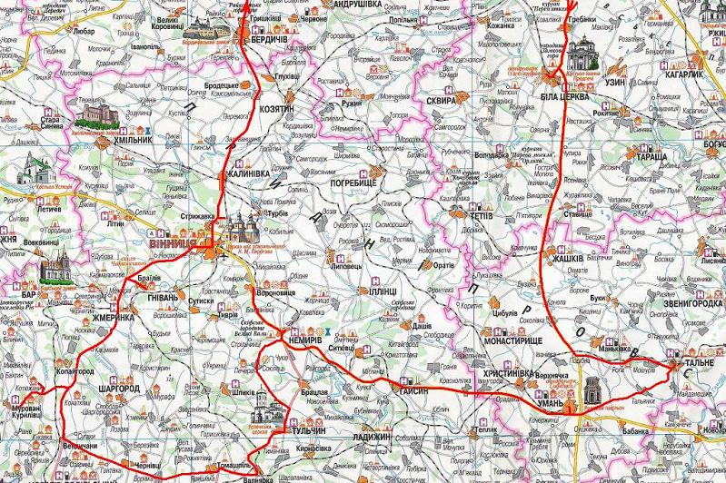 Большая развязка сразу за Уманью, направление на Винницу. Среднего качества магистраль М-12 приводит в Немиров. Как известно, здесь производят самую знаменитую в мире марку украинской горилки (многие россияне на вопрос о лучшей русской водке по простоте душевной часто называют именно Nemiroff). С бюджетообразующим предприятием, нарядные корпуса которого бросаются в глаза ещё с трассы, местечку явно повезло. Дороги отремонтированы, церкви реставрируют, проявлений характерной для украинской глубинки нищеты почти нет. На подъезде к центру замечаем большое здание одной из первых в Украине электростанций (XIX-XX вв.). Использовать его по прямому назначению, думаю, уже нет ни возможности, ни необходимости, хотя в советские времена подобные мини-ГЭС в значительной мере обеспечивали энергией сельские районы. Сейчас же здесь просто напрашивается придорожный мотель с рестораном.