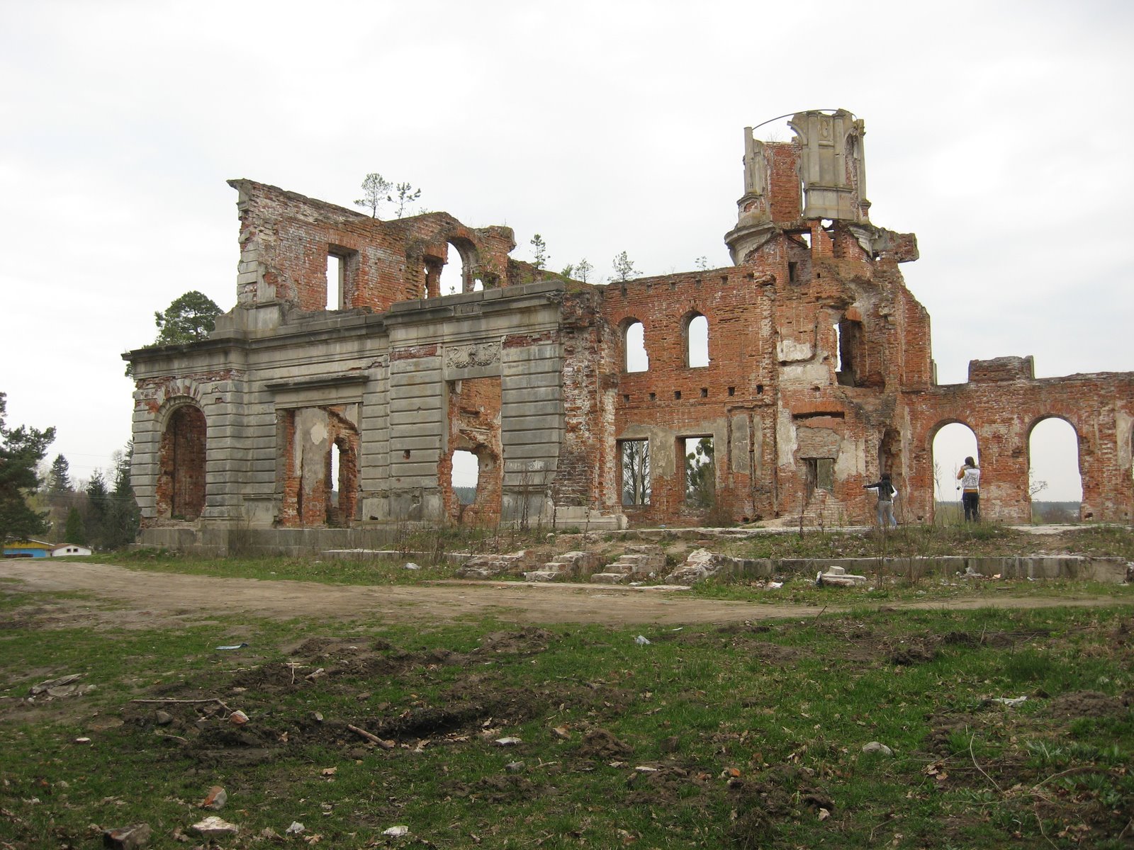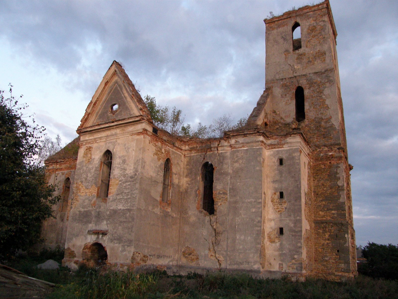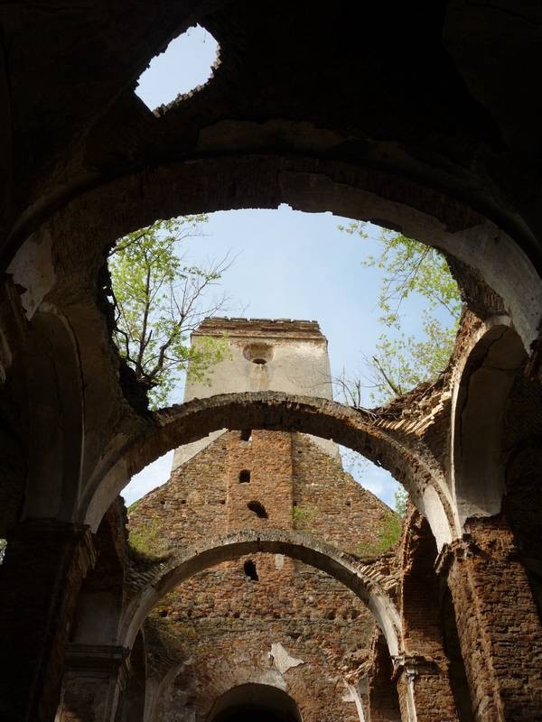 За плотиной на пригорке возвышается православная Троицкая церковь. А метров в трестах за поворотом храм уже другого периода и другого верования — костел Иоанна Крестителя 16 века. Вернее сказать его руины. Внутри на одной из колон — свежие отверстия. По словам местных жителей оттуда какие-то приезжие совсем недавно вытащили клад.
