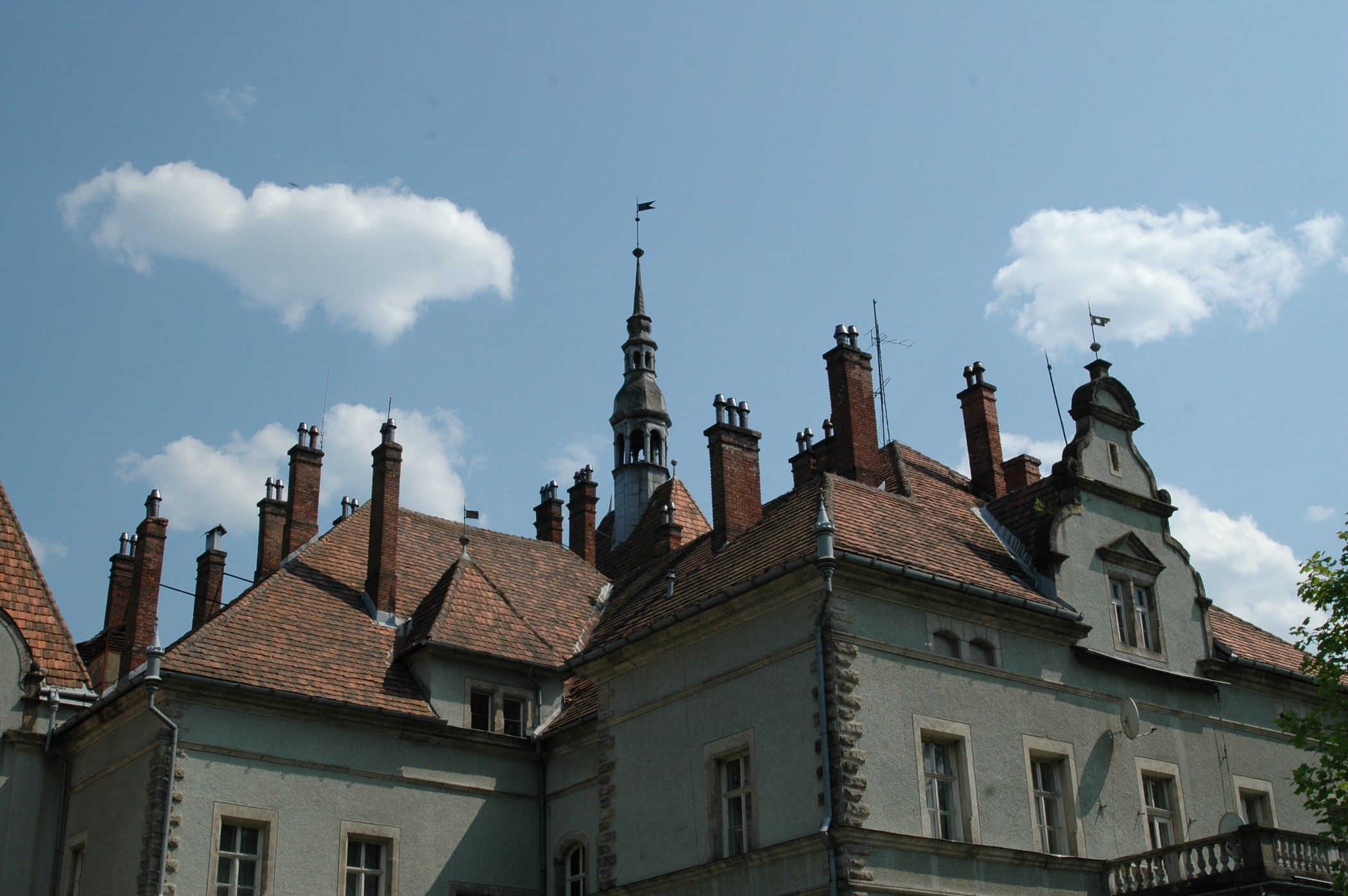 И только в 1890 был возведен каменный замок во французском стиле в духе романтизма. Отличается замок не только красотой архитектуры, но и символичностью, которую вложили в него создатели. Так, замок имеет ровно 365 окон, 52 комнаты, 12 входных дверей. Думаю вы уже догадались какая аллегория скрыта в этих числах — это количество дней, недель и месяцев в году. Но и это еще не все, напротив дворца был разбит пруд, форма которого соответствовала контуру Австро-Венгерской империи на карте. Сейчас, конечно, пруд давно потерял такую форму, но продолжает служить природным украшением замка, отражая в нем многочисленные окна и башенки здания.