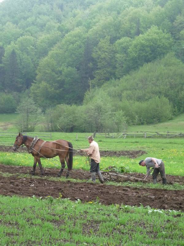 Вдоль дороги изредка попадаются безымянные хутора и вполне обжитые села. В одном из них крестьяне как раз заняты вспашкой своего огорода. В упряжке добрый конь, который, как известно, борозды не портит. Табуны его сородичей в немалом количестве пасутся на лугах.