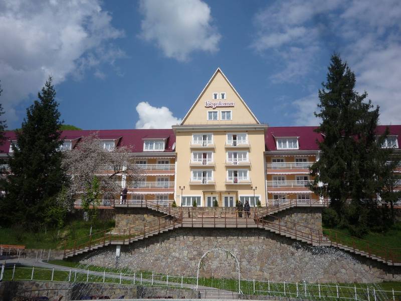 Но все когда-нибудь кончается. Мы в селе Долгом, плавный поворот и дорога упирается в ажурные кованые ворота. На склоне стремится в горную высь удивительное по своей красоте здание. Над входом гордо реет название – «Боржава». Вернее «Боржавское отделение санатория Теплица».