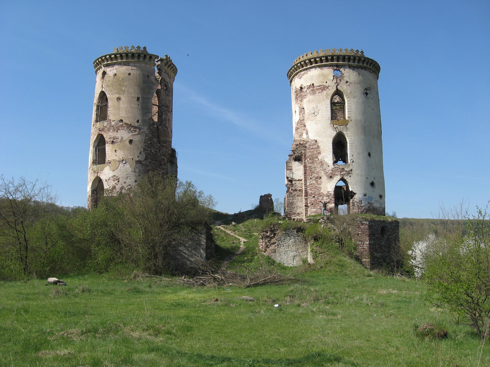 Больше всего впечатляют не сами руины, а панорама, которая открывается с края внешнего вала: очертания Бучача на холме в отдалении, живописный рельеф, вьющаяся лента Стрипы внизу… Как всё-таки много таких замечательных мест на Подолье, облюбованных когда-то знатью под свои резиденции. И как здорово путешествовать в этих местах в начале мая. Бывает, двигаешься по какой-нибудь второстепенной дороге просто в туннеле из цветущих белым цветом фруктовых деревьев!