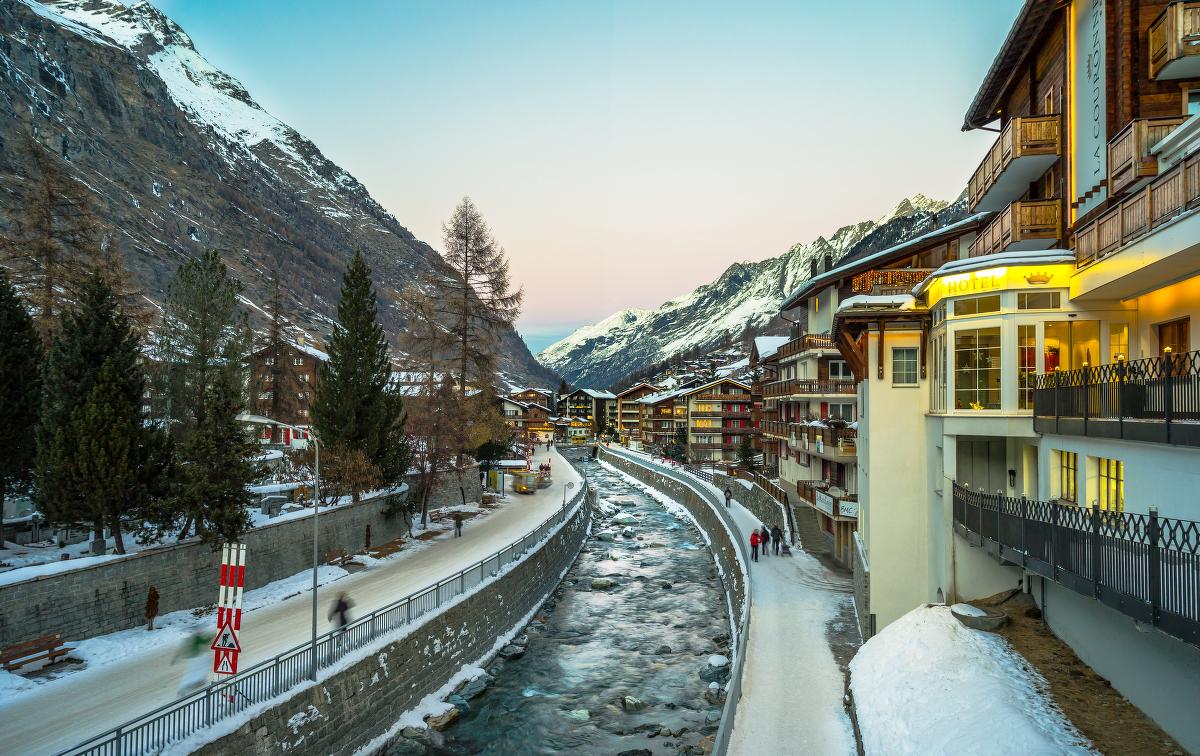 Этот курорт знаменит в Швейцарии, поскольку включен в список «Best of the Alps». Он находится у склонаМатерхорна. Лыжные трассы этого курорта будут более подходить для опытных спортсменов, но и для начинающих лыжников и сноубордистов тоже найдутся весьма разнообразные трассы, помимо этого, можно прогуляться вокруг горы на снегоходе или пешком, любуясь возвышенными красотами. Одно из преимуществ – это возможность насладиться чистым воздухом, ведь въезд автомобилей на территорию этого курорта запрещен. Вы сможете добраться сюда поездом, после доехать до пункта назначения, например, в упряжке с лошадьми.