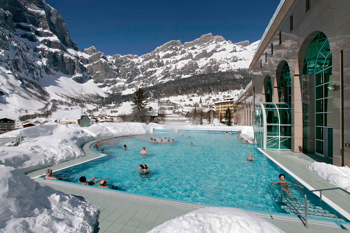 Одно из главных отличий этого места от остальных – это его масштаб, он является самым крупным термальным курортом Альп. Отдых здесь оздоровительный, необходимо лишь получить допуск. Около 50 км здесь занимают спортивные трассы, они извилисты и не просты, вы точно не заскучаете во время лыжной прогулки с вашей семьей. На территории Лёйкербада есть Фан-парк для сноубордистов и около 30 км для беговых лыж. Наверное, особенно приятным будет посещение бань и источников. Linden Aipentherme, Посетив это место, вы обнаружите обилие бань, массажные кабинеты, всевозможные виды саун и бассейнов, как минимум 40 минут стоит уделить римско – ирландской бане. Если вы заглянете всей семьей в Burgerbad, у вас будет возможность прокатиться на горке или расслабиться и согреться под гидромассажем. Ежемесячно в бургербаде проходят завтраки с шампанским.