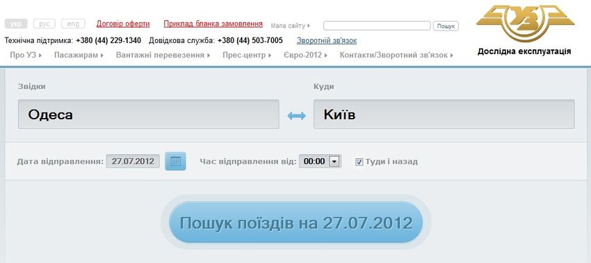 Первые два сервиса являются альтернативными, а вот официальный от Укрзалізниці. Он довольно удобно продуман и купить билет сможет даже неопытный компьютерный пользователь. Вот как происходит процедура заказа: