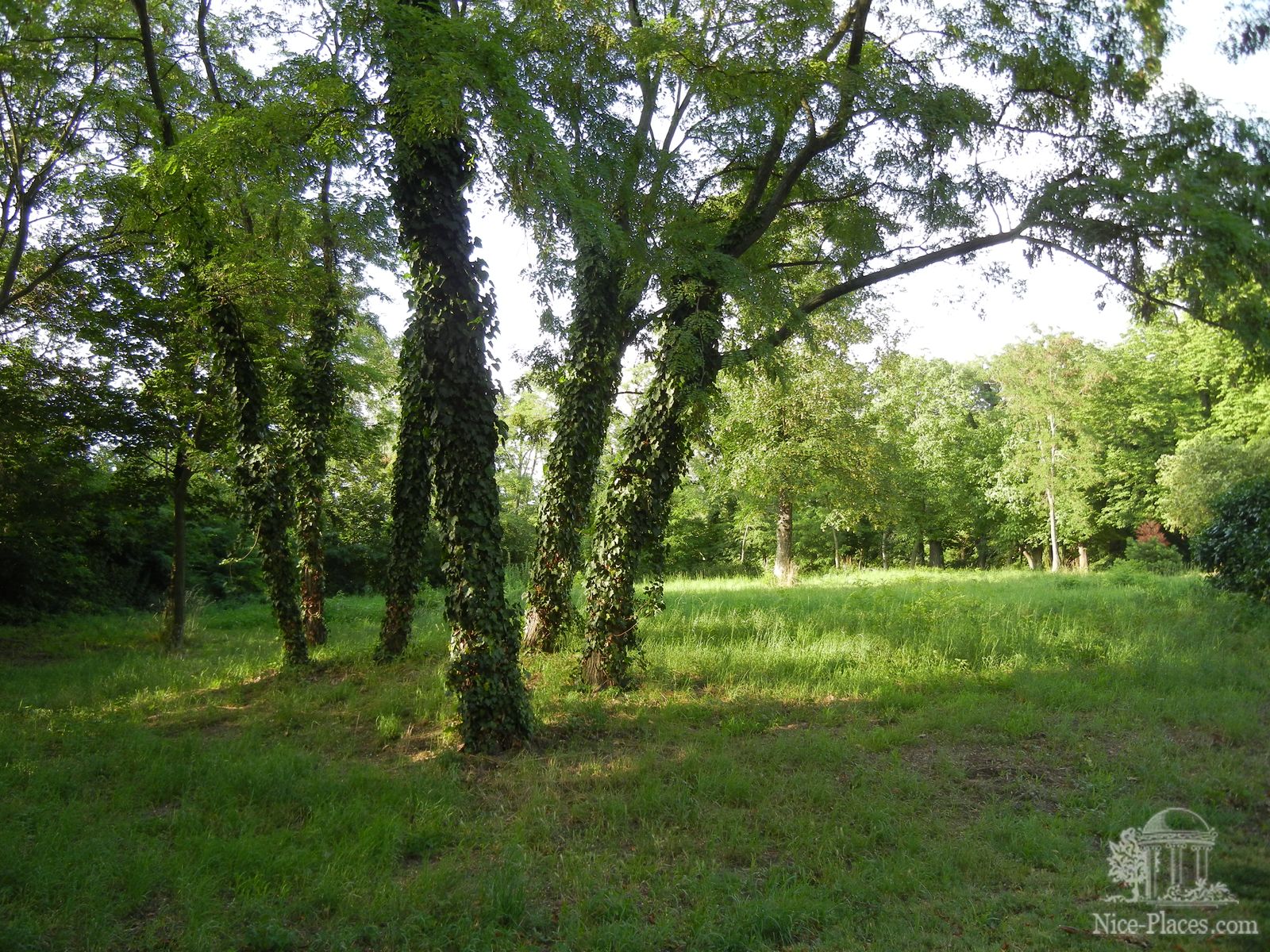 Увитые плющом деревья в парке
