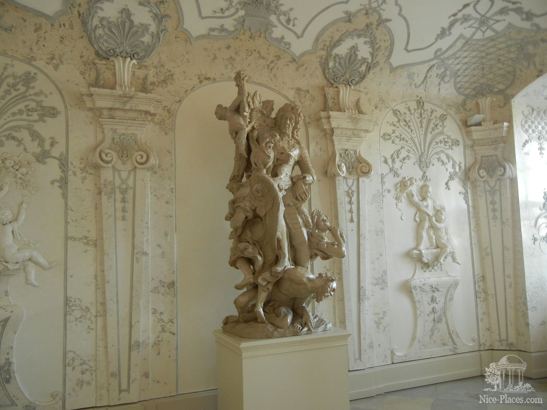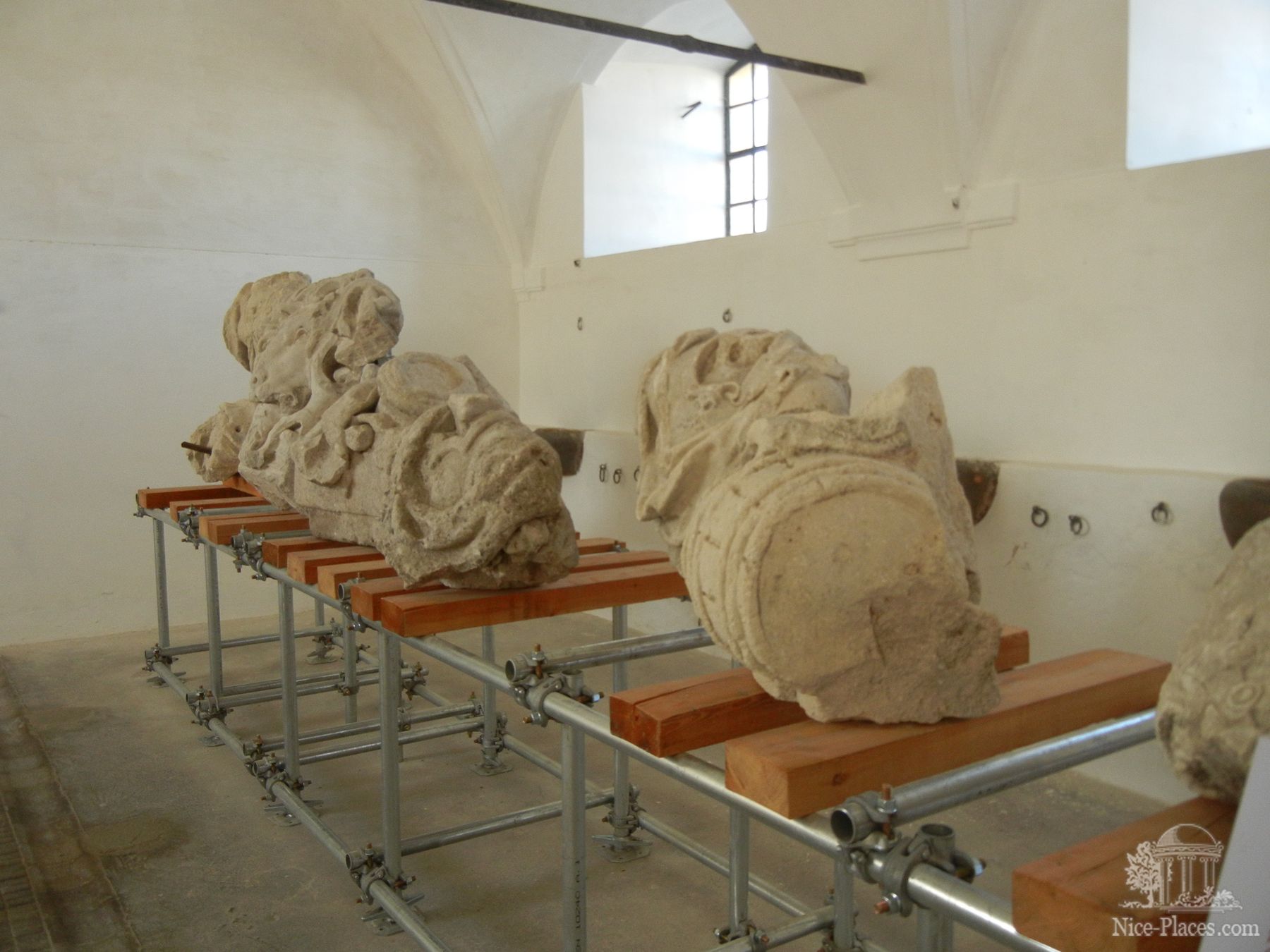 Зал, в котором хранятся бывшие скульптуры с территории замка, поврежденные и не подлежащие восстановлению