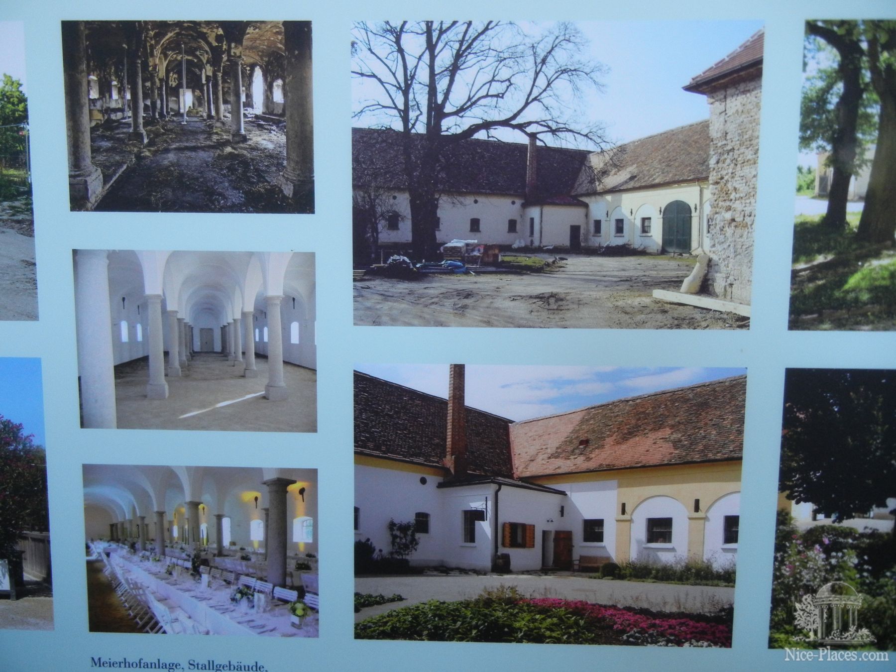 Замок Schloss Hof находится на самом востоке Австрии, на границе со Словакией. К замку примыкает огромная фермерская усадьба, которая раньше была хозяйственной частью замка. Сам дворец с террасами и парком был построен в 1720-х годах для принца Евгения Савойского. Следующим владельцем была императрица Мария Терезия, подарившая замок своему мужу Стефану Франтишеку. В 2005 году замок и хозяйственная усадьба были полностью реставрированы, буквально из руин. Ныне это красивое и умиротворяющее место, особенно фермерская усадьба Meierhof.