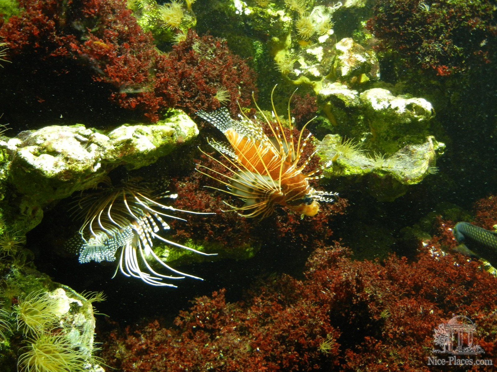 Скорпены в окружении живых кораллов, анемон и других беспозвоночных