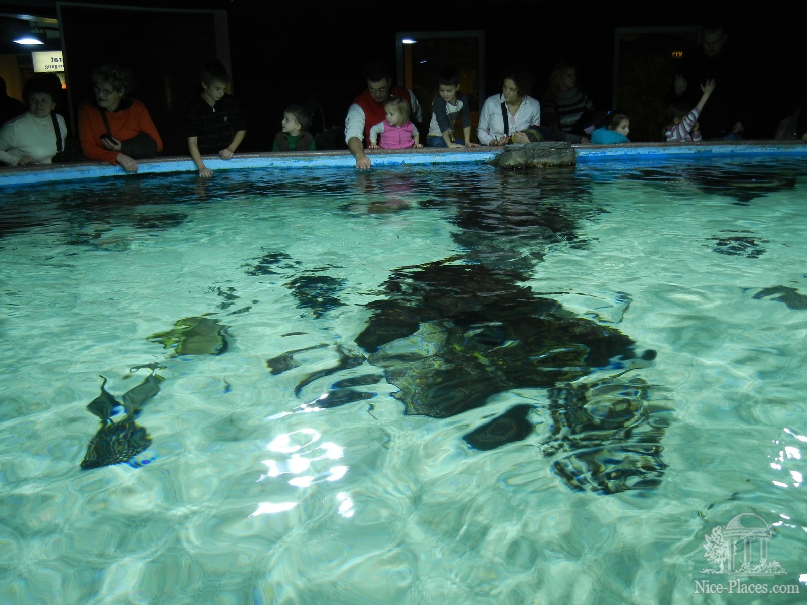 Открытый бассейн со скатами. Там их можно кормить с рук