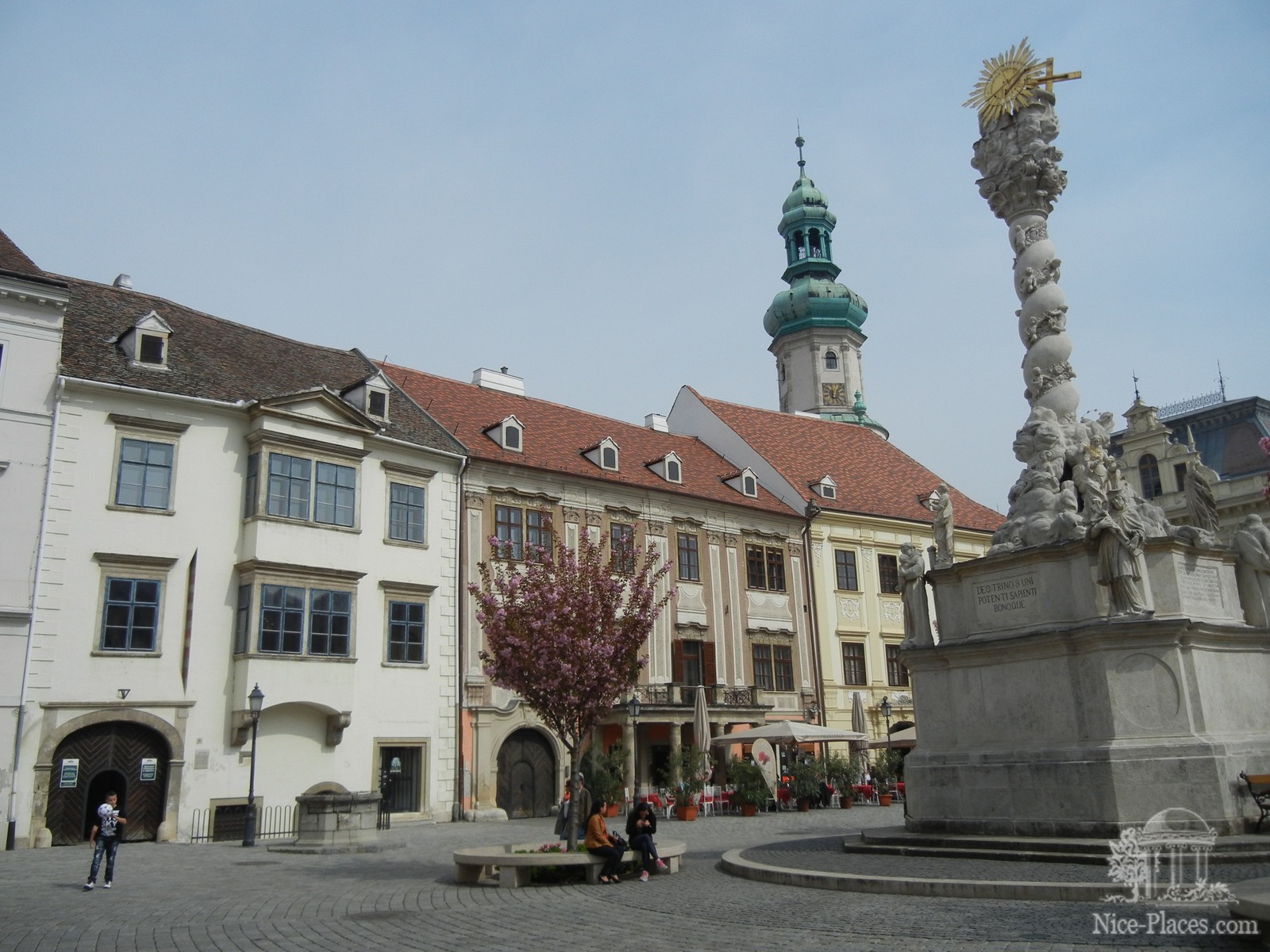 В центре Главной площади Шопрона Чумной столб - память о страшной эпидемии в городе