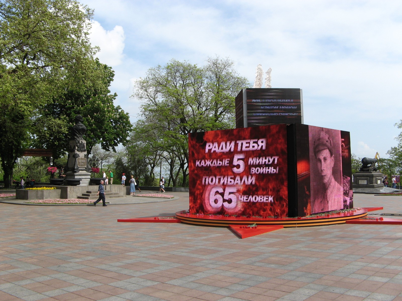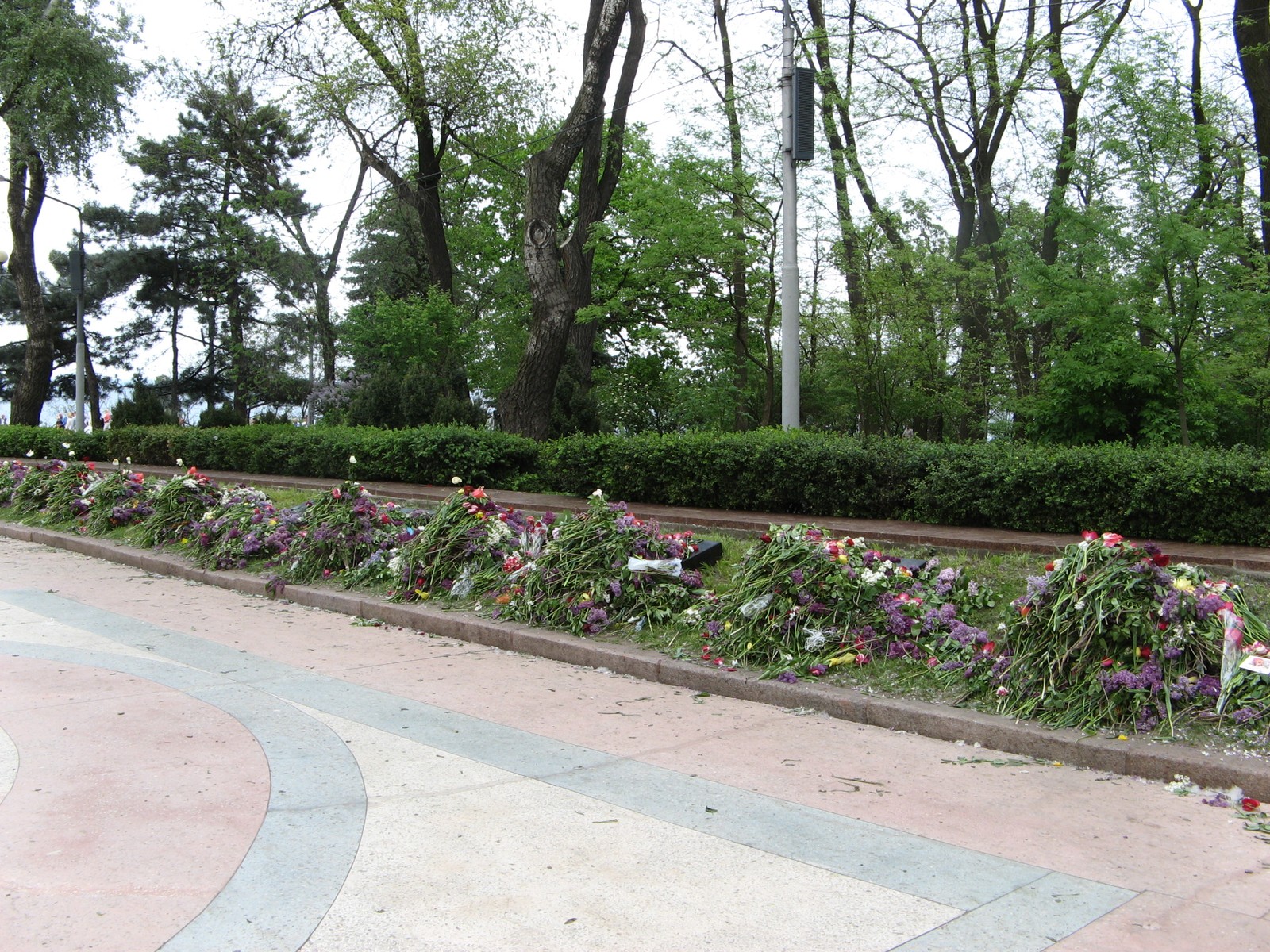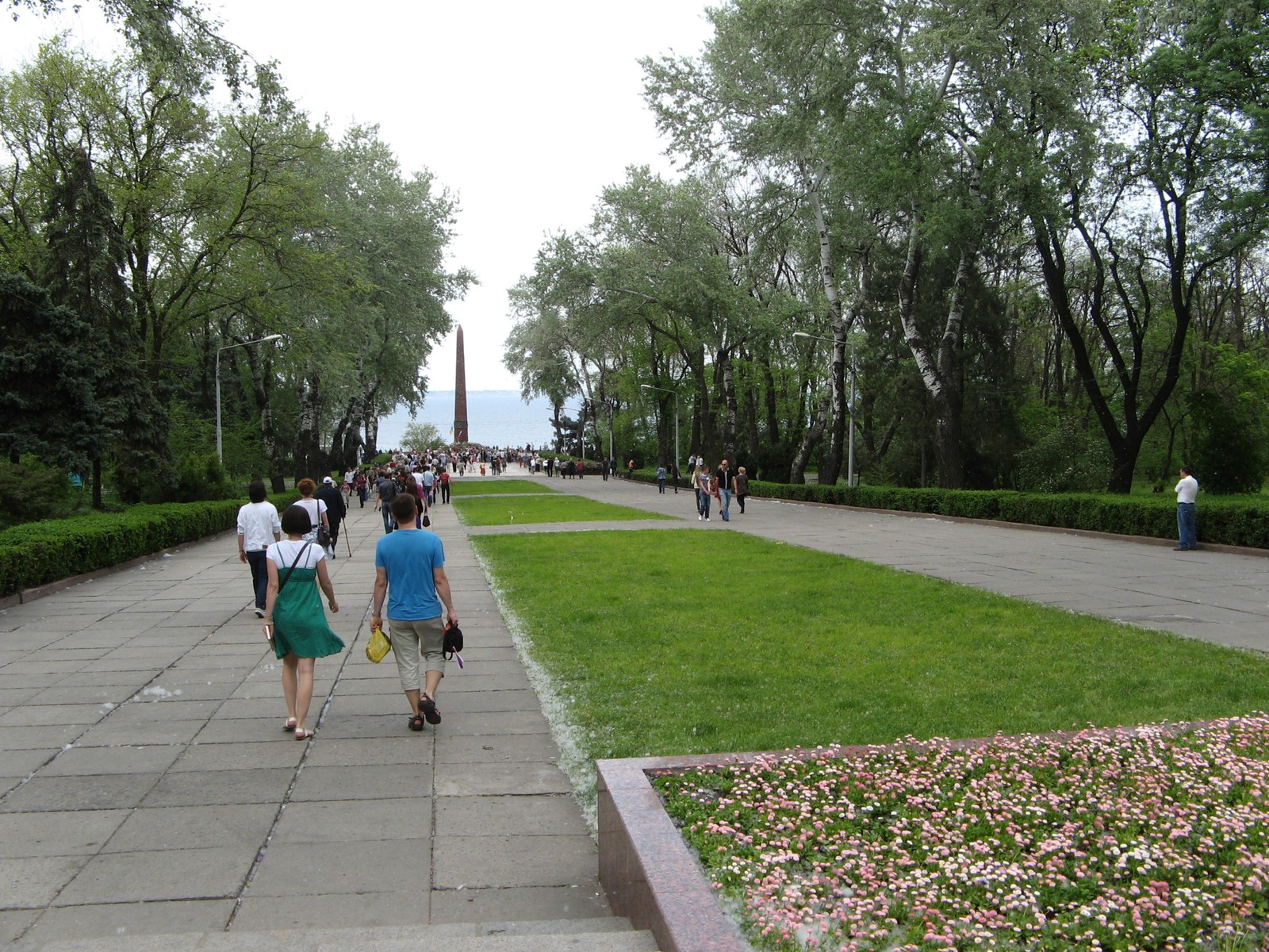 Аллея славы в парке Шевченко и горы цветов