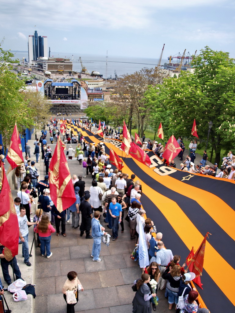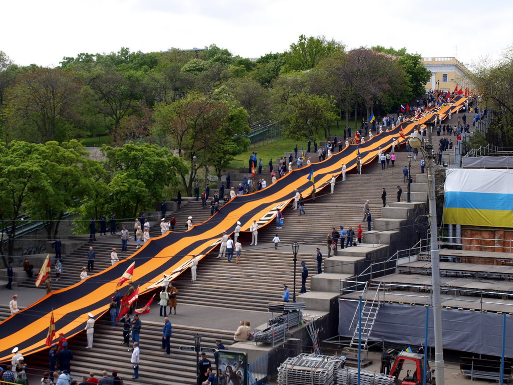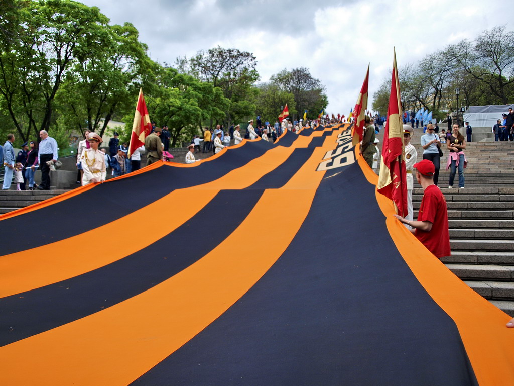 Гигантская георгиевская лента на Потемкинской лестнице