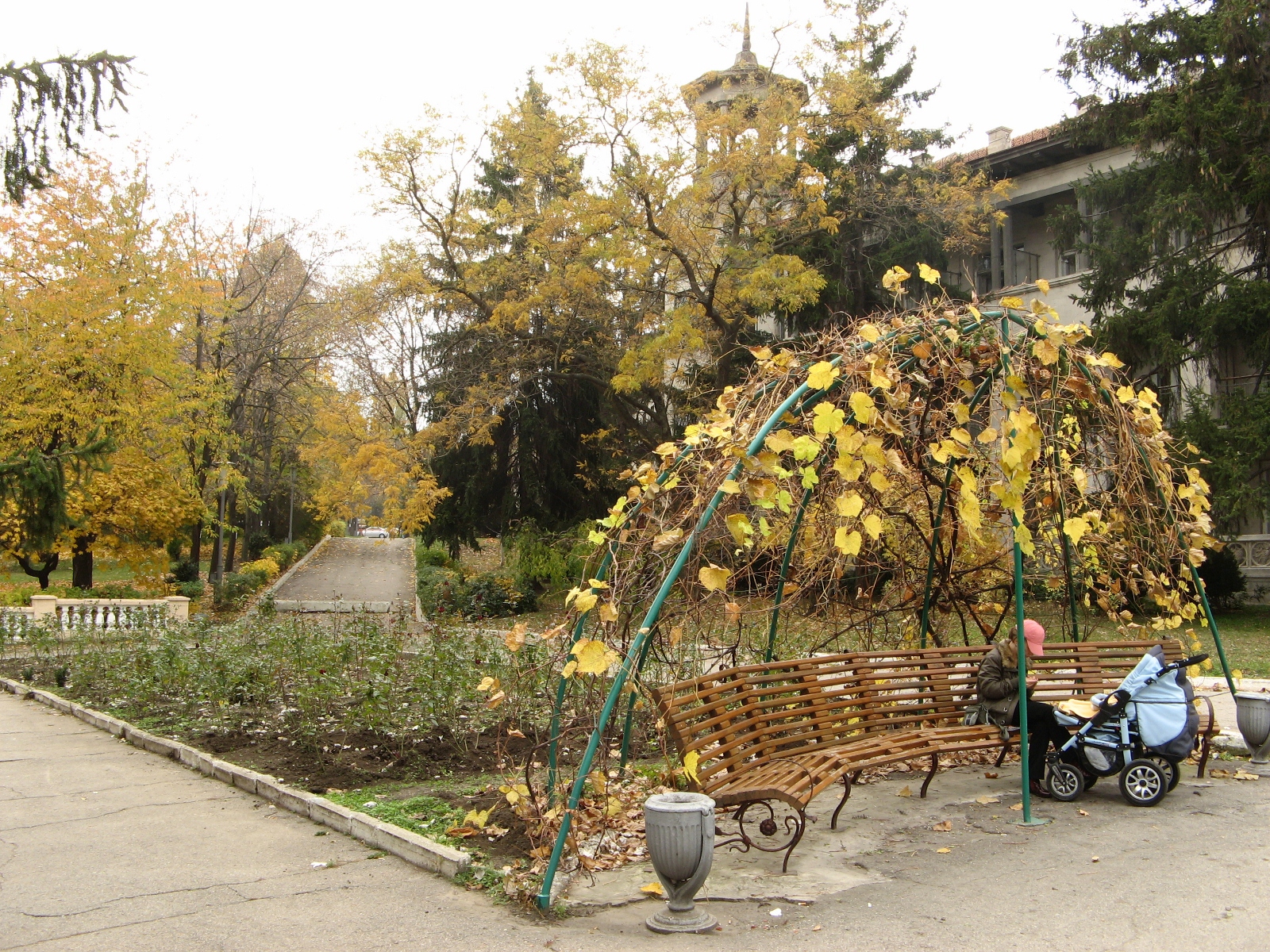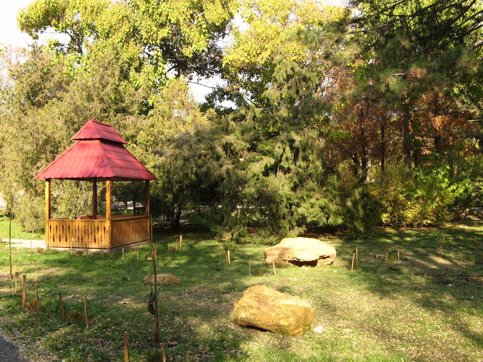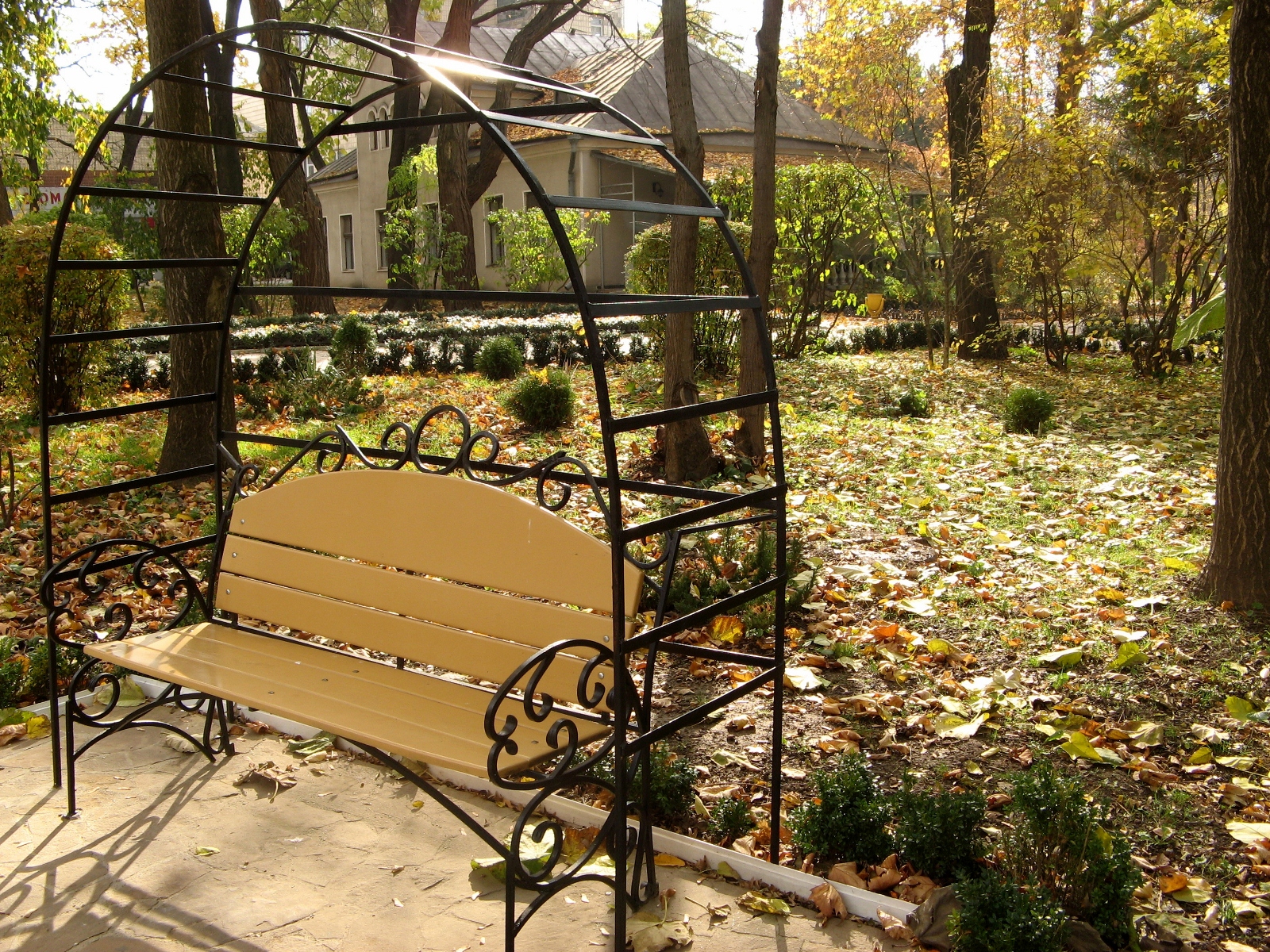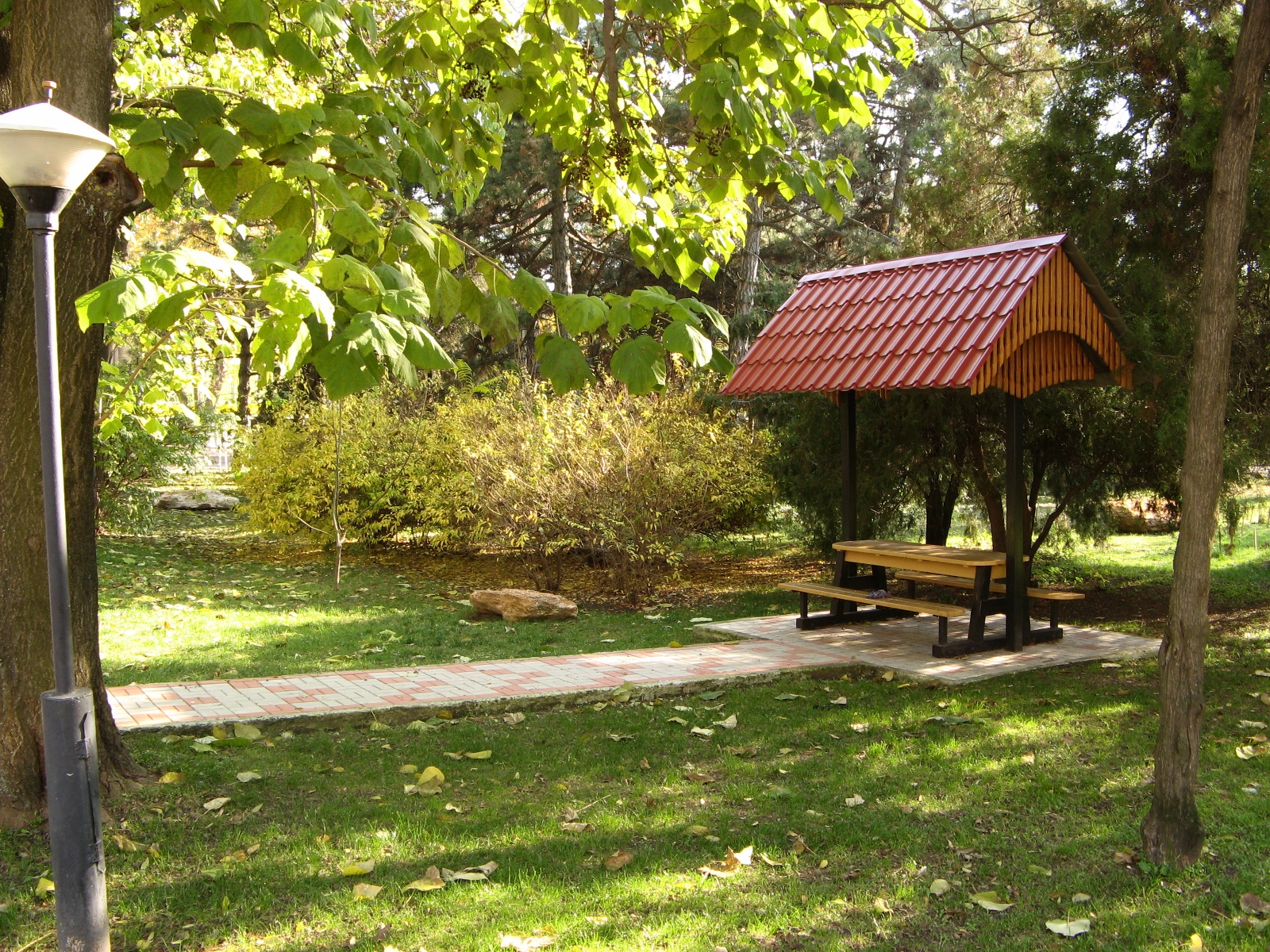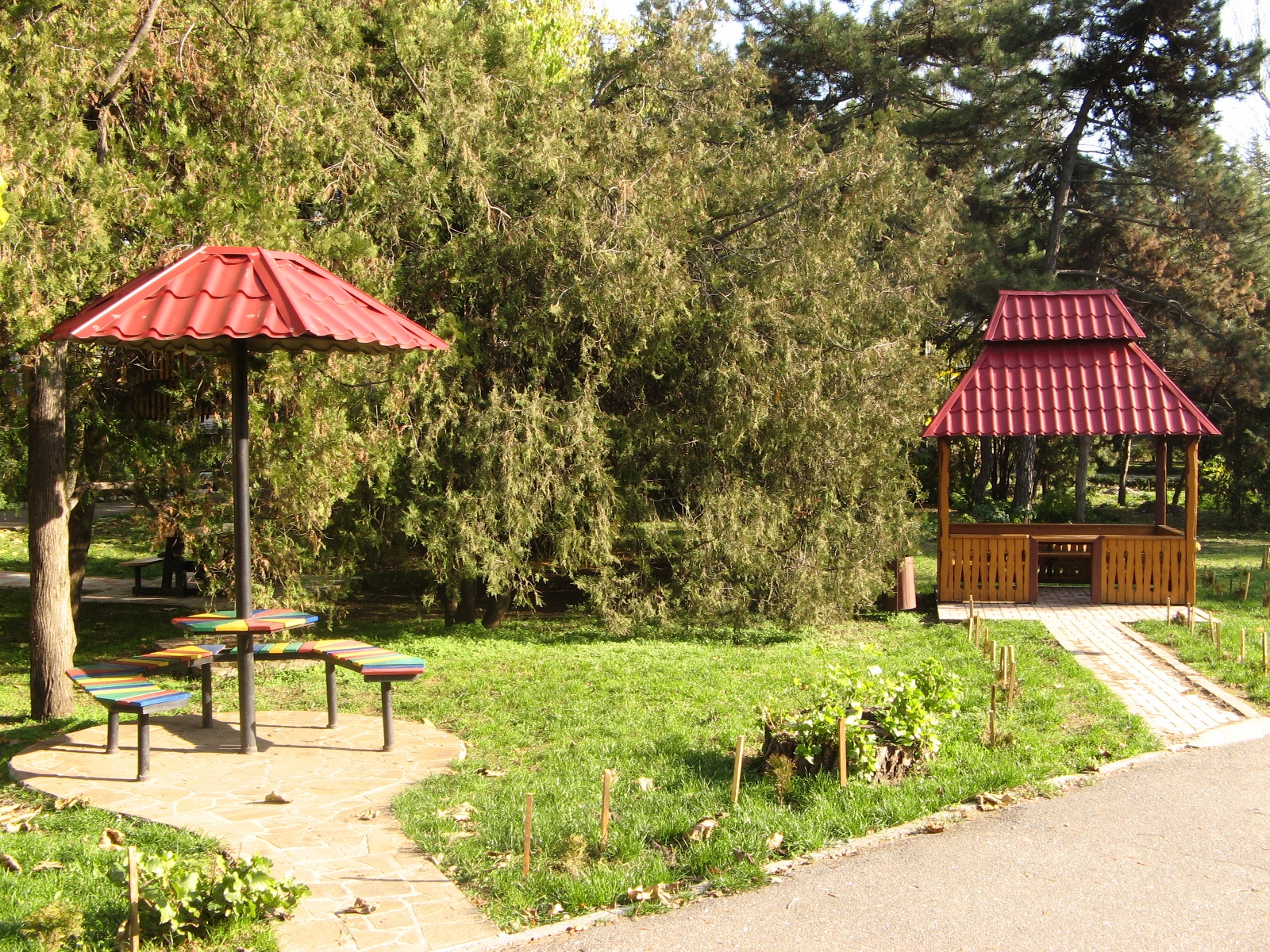 Санаторий Молдова. Скамейки-беседки у главного входа